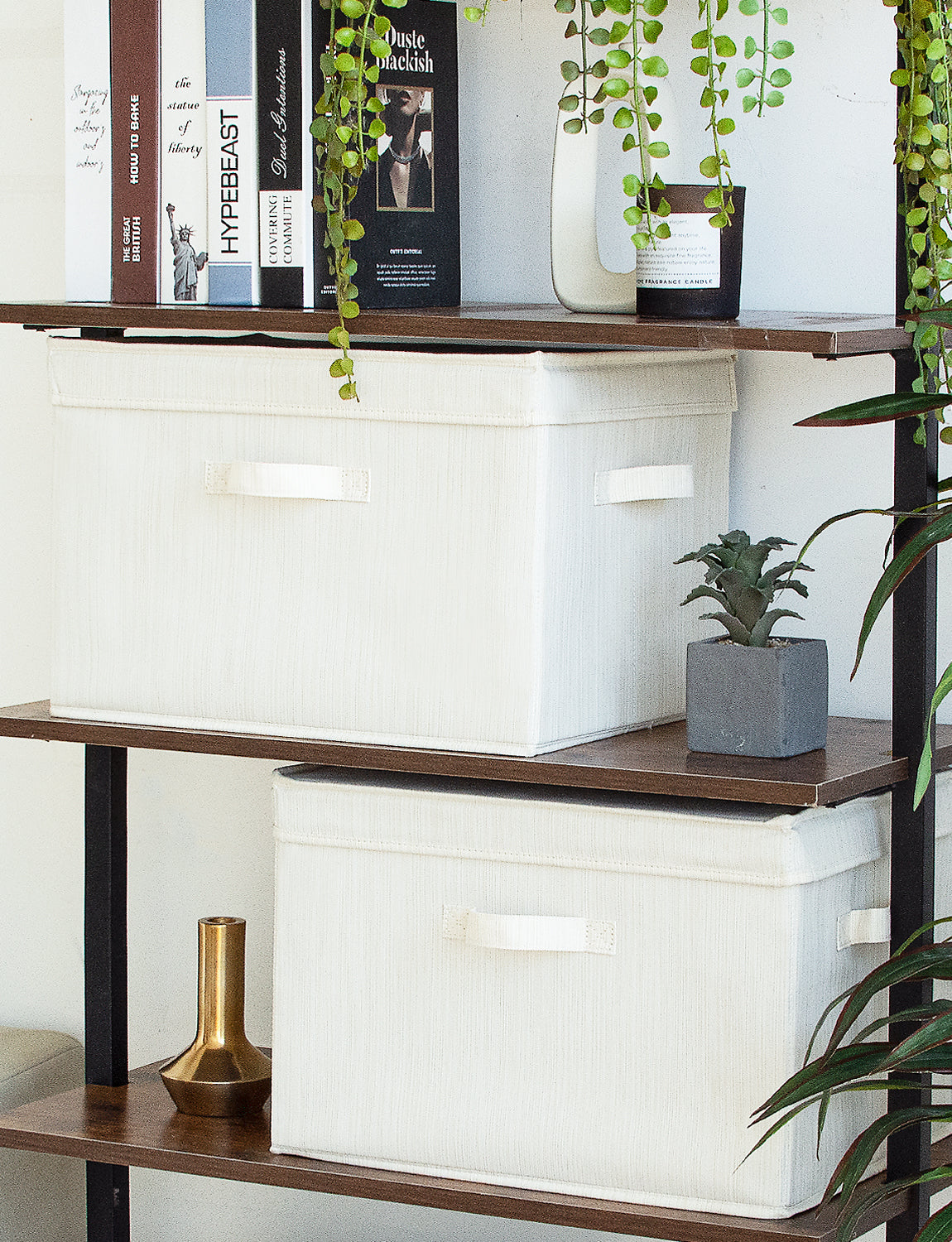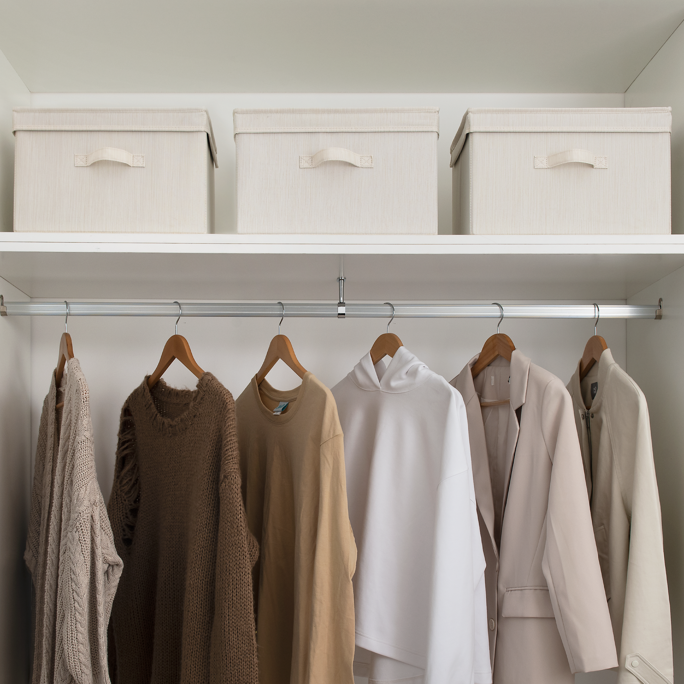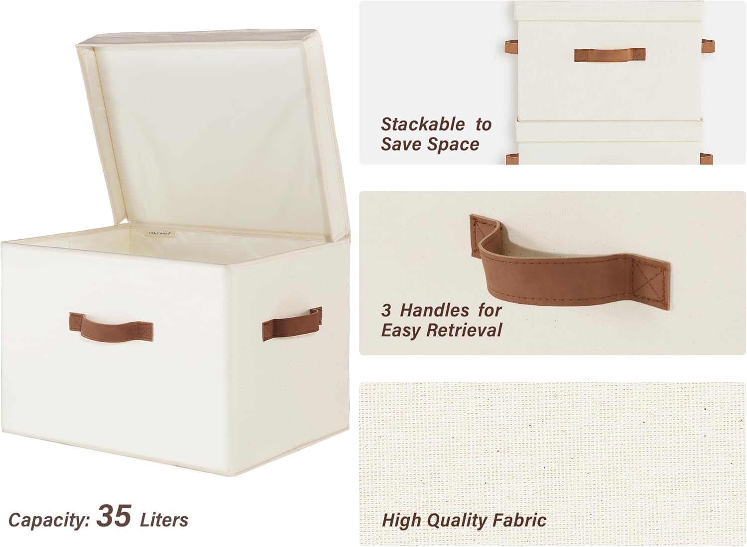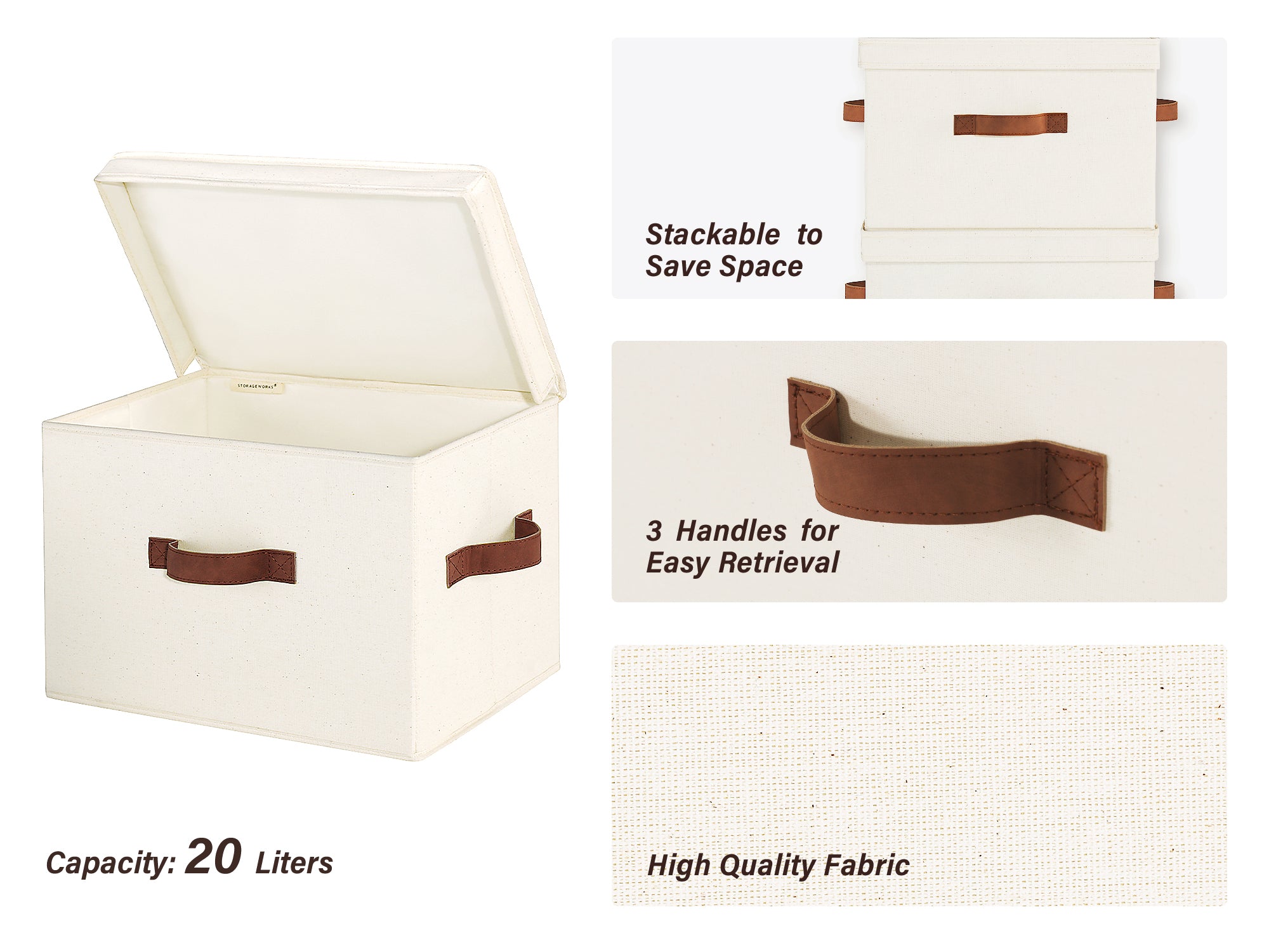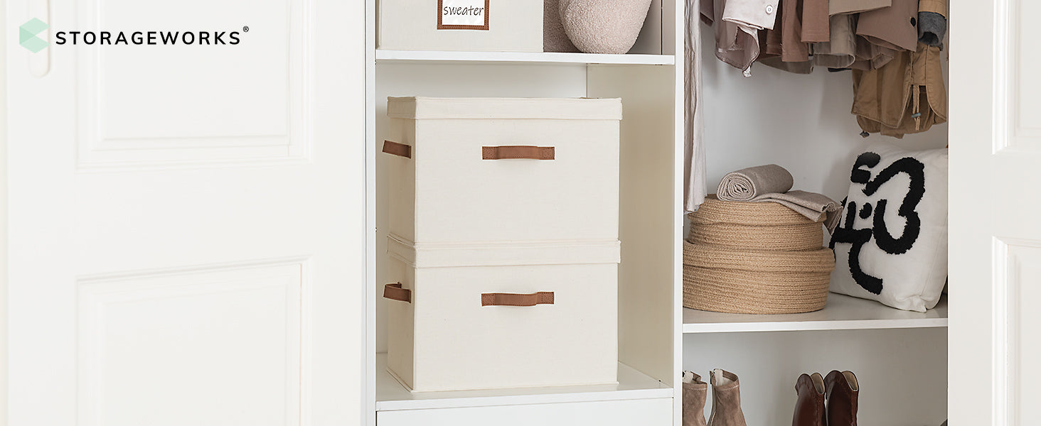 Stackable to put on shelves, inside closets, at corners, or under underbed.