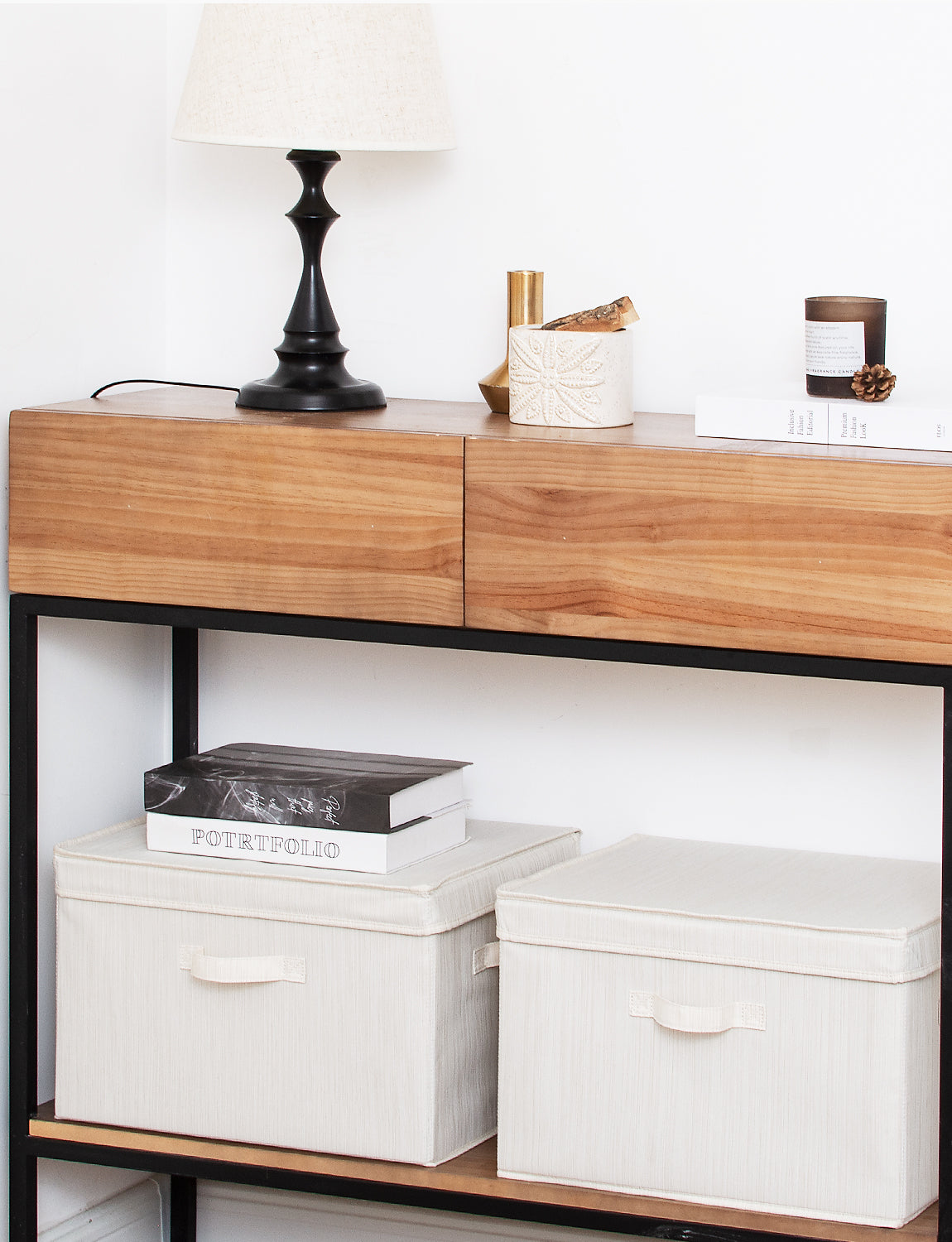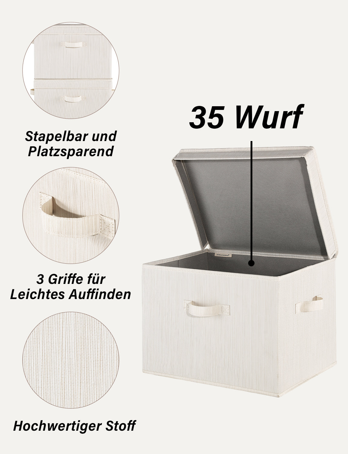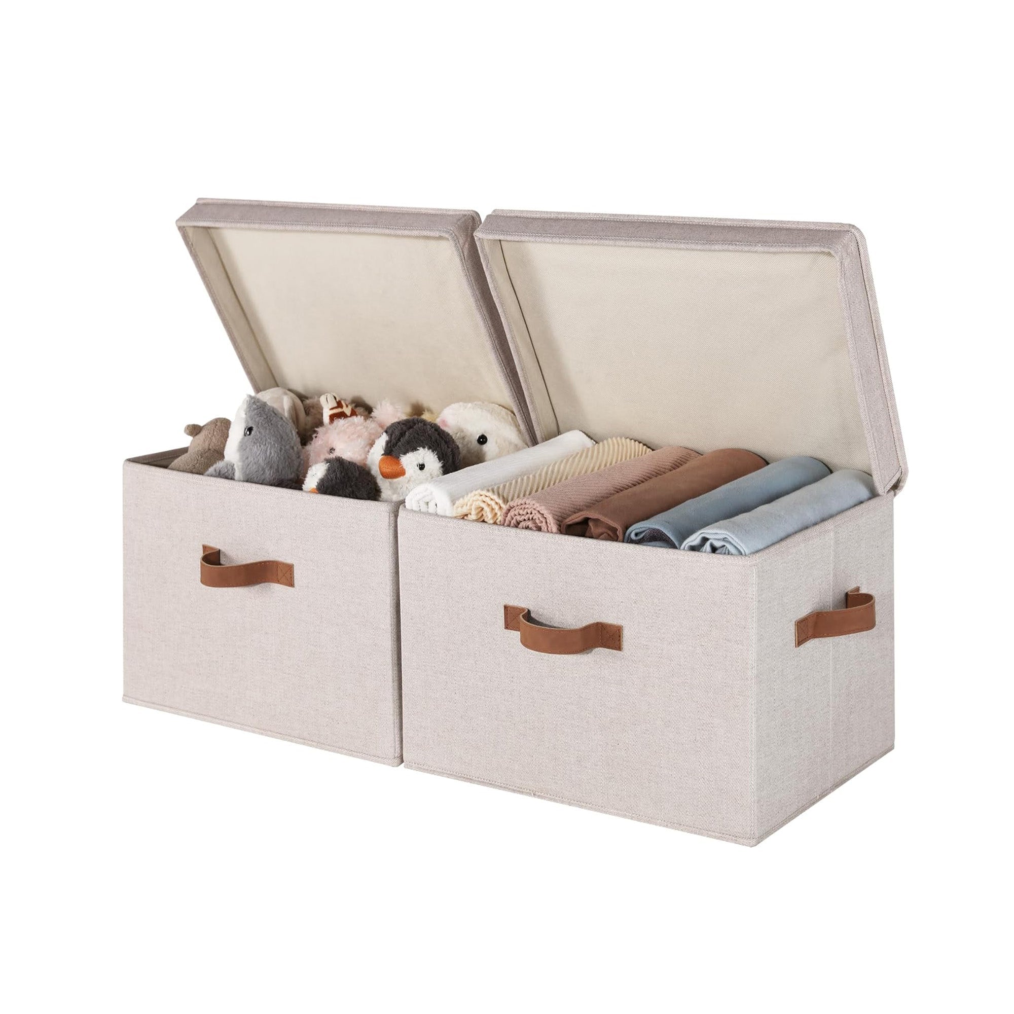 Storage baskets with lids reinforced with heavy-duty boards can support a weight of up to 25 lbs.