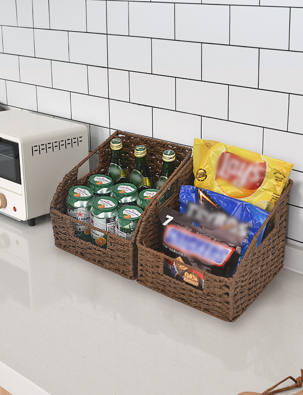 Versatile pantry baskets for spices, onions, canned foods, pet food in the kitchen, or magazines, iPads, Kindles, games, and media.