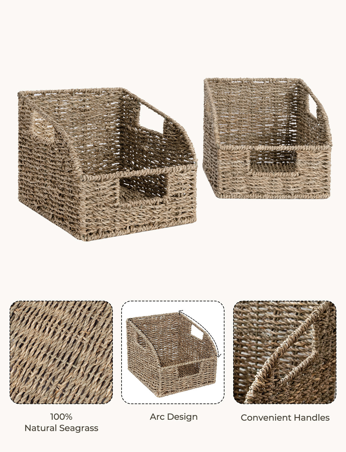 Made from 100% natural, earth-friendly, renewable materials, the kitchen storage baskets for the pantry help reduce our impact on the environment.