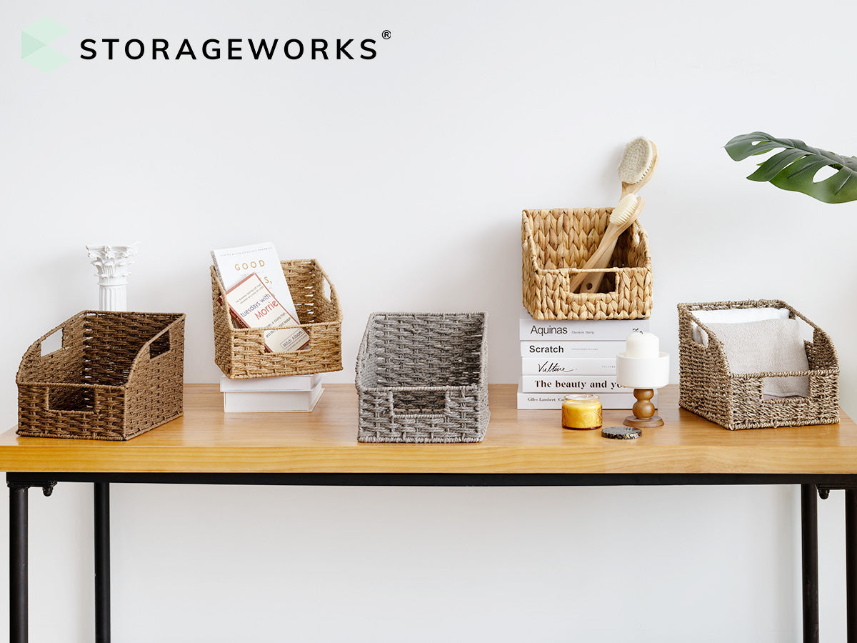 • Handwoven Water Hyacinth Baskets with Built-in Handles, 2 Pack