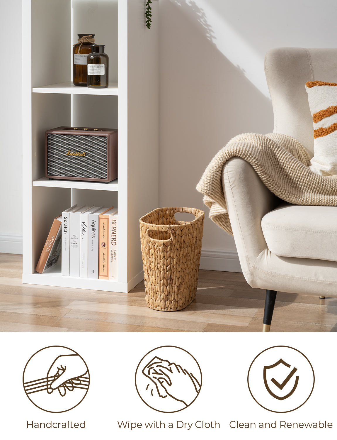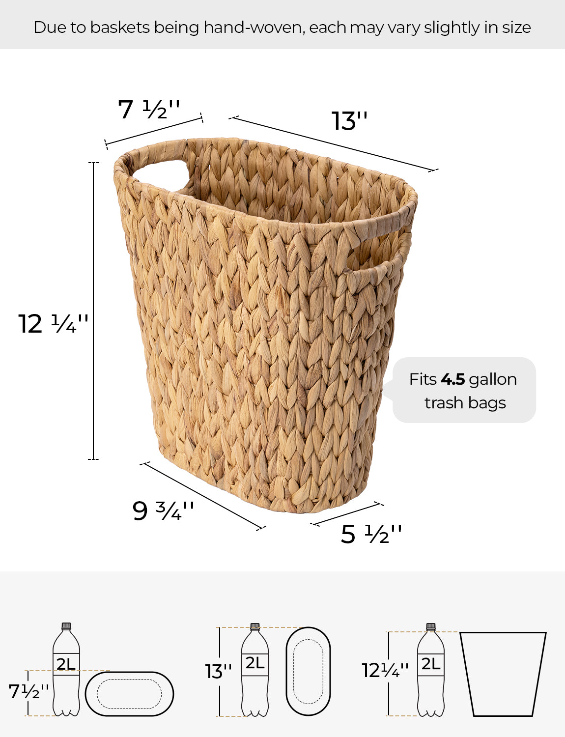 • Handwoven Water Hyacinth Trash Can with Built-in Handles