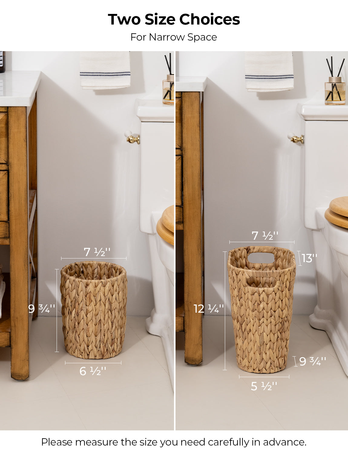 The compact size of this wastebasket is perfect for small spaces, for example, bedsides, bathroom sinks, etc.