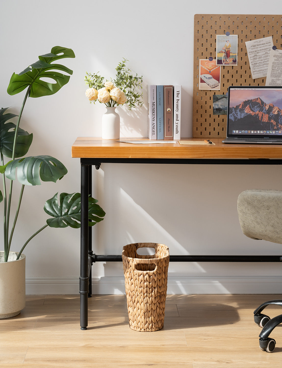 This wicker wastebasket not only keeps your area organized, but its distinctive hand-woven texture also adds aesthetic appeal.