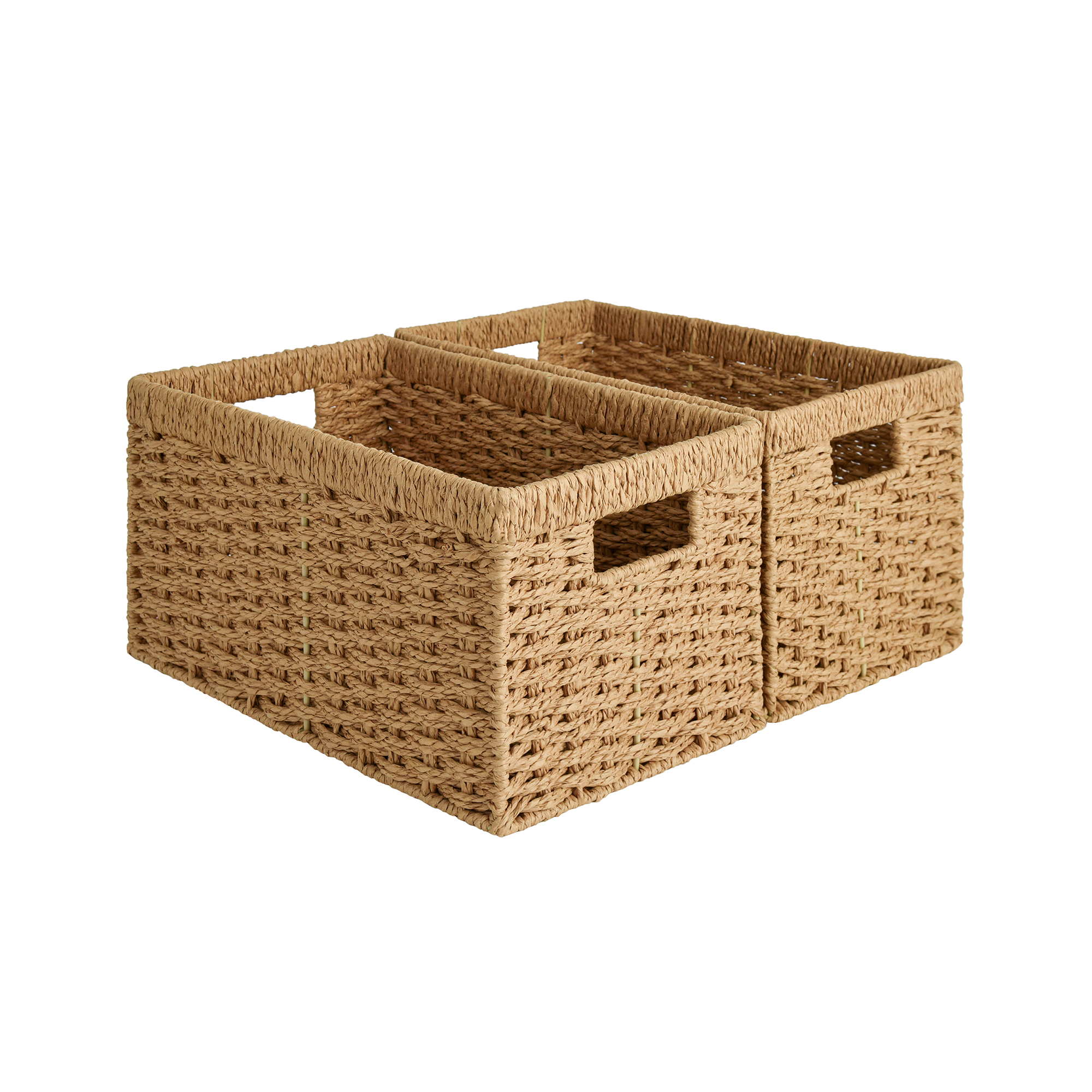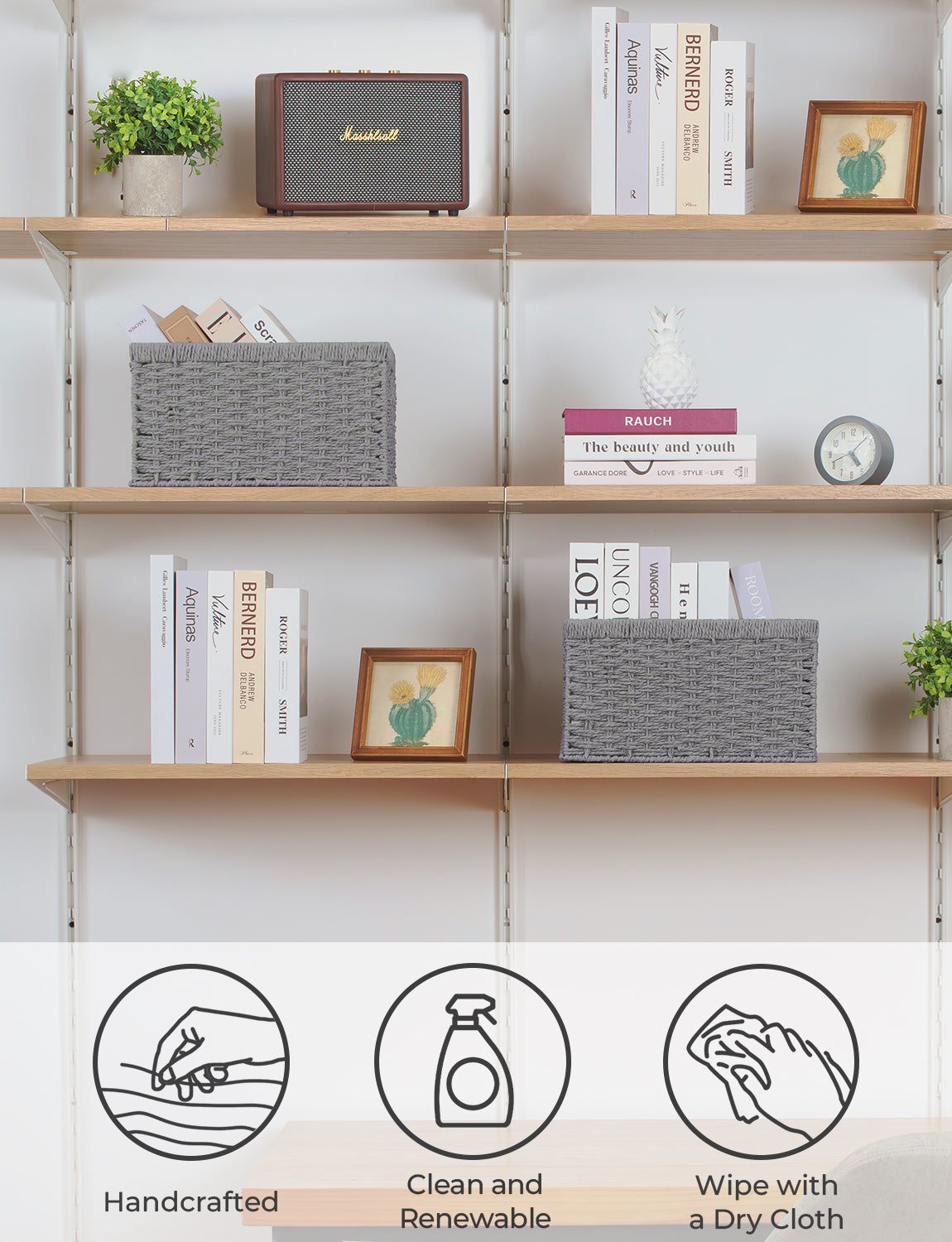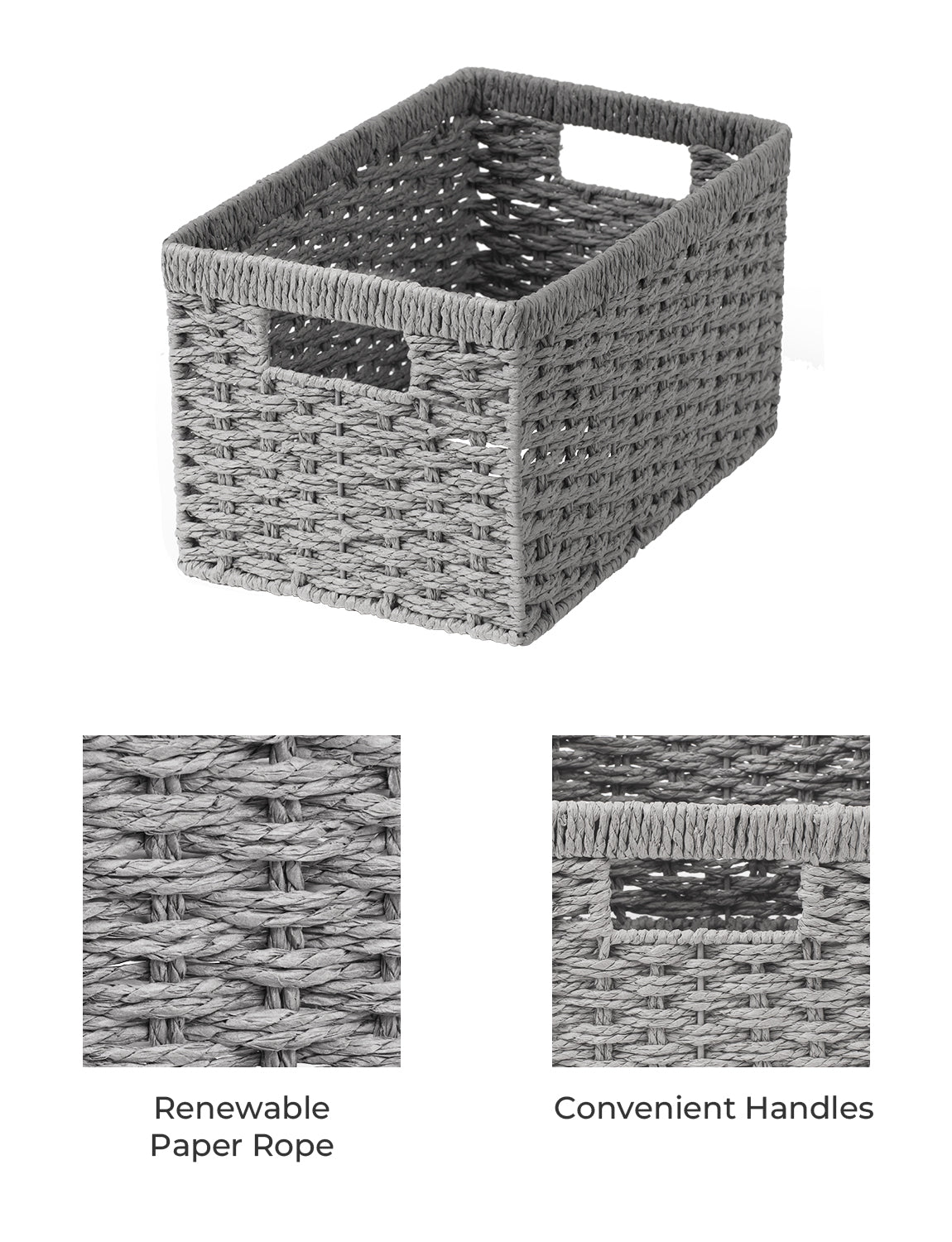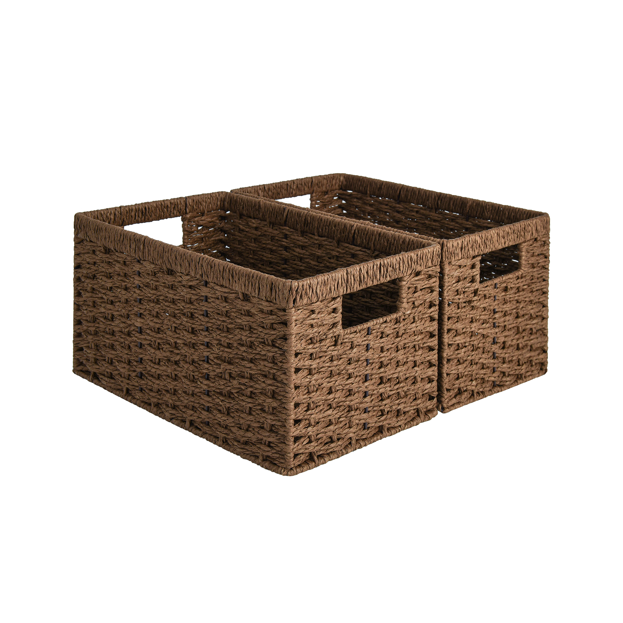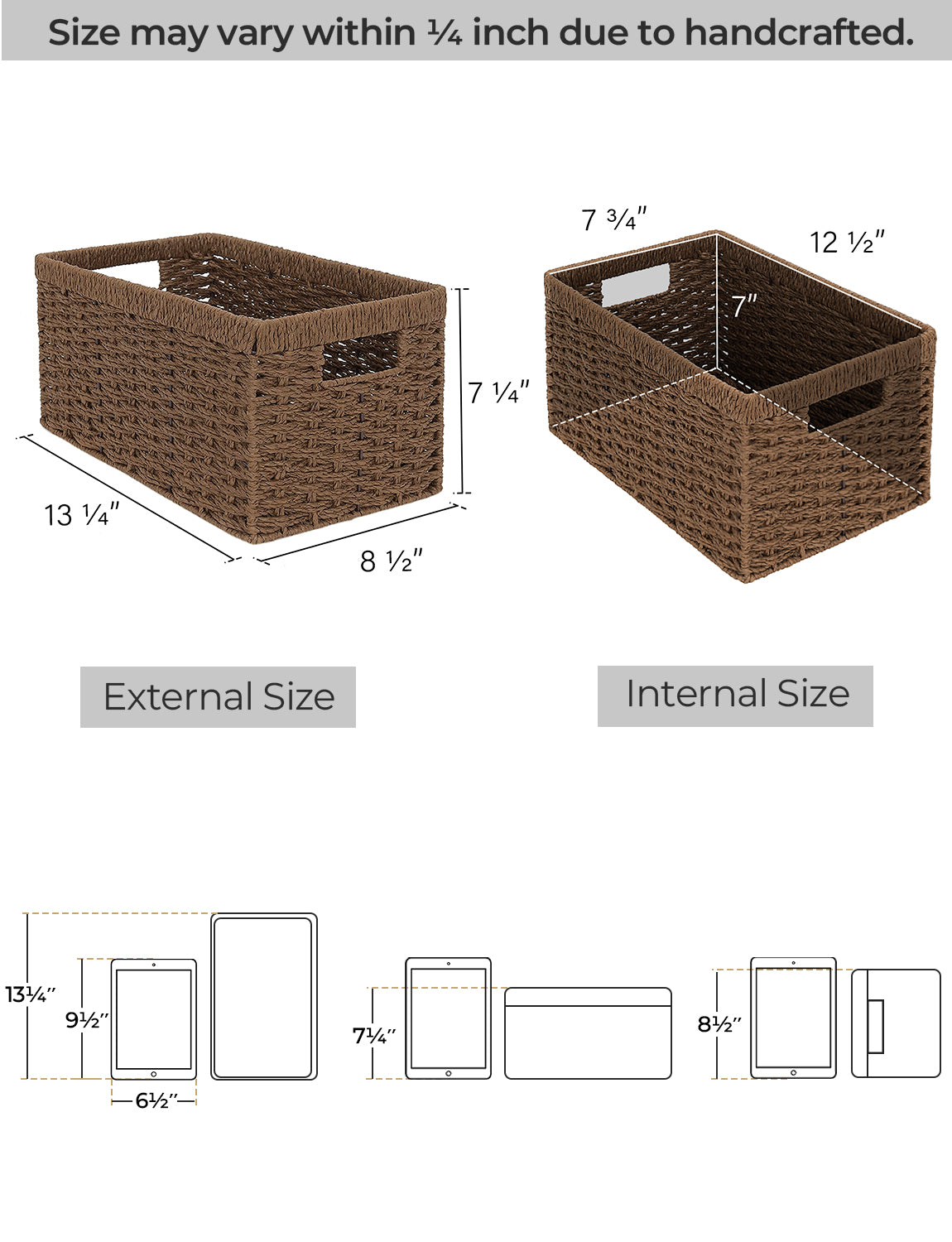 Versatile woven baskets for storing hand towels, toiletries in the bath, or magazines, games, pet toys, media, and household items.