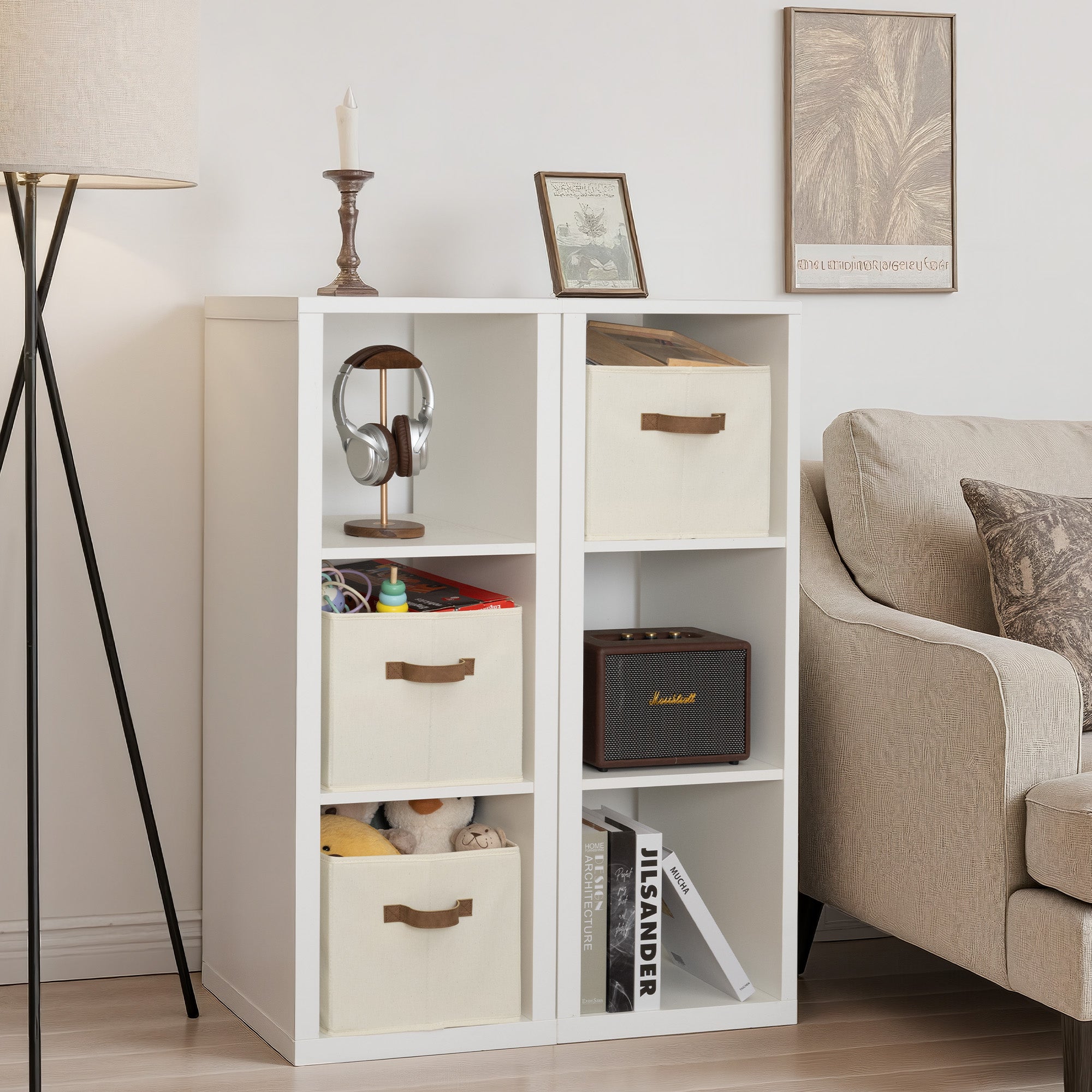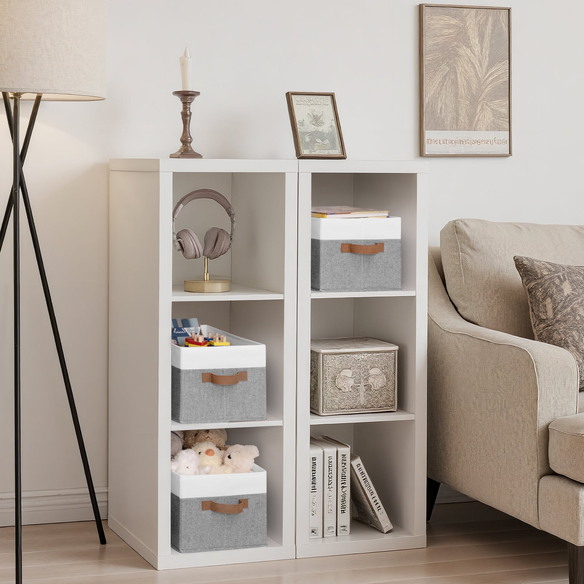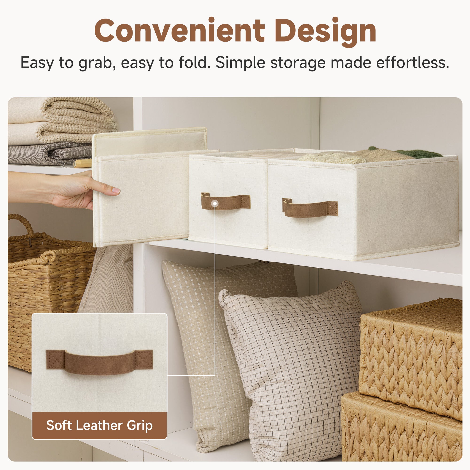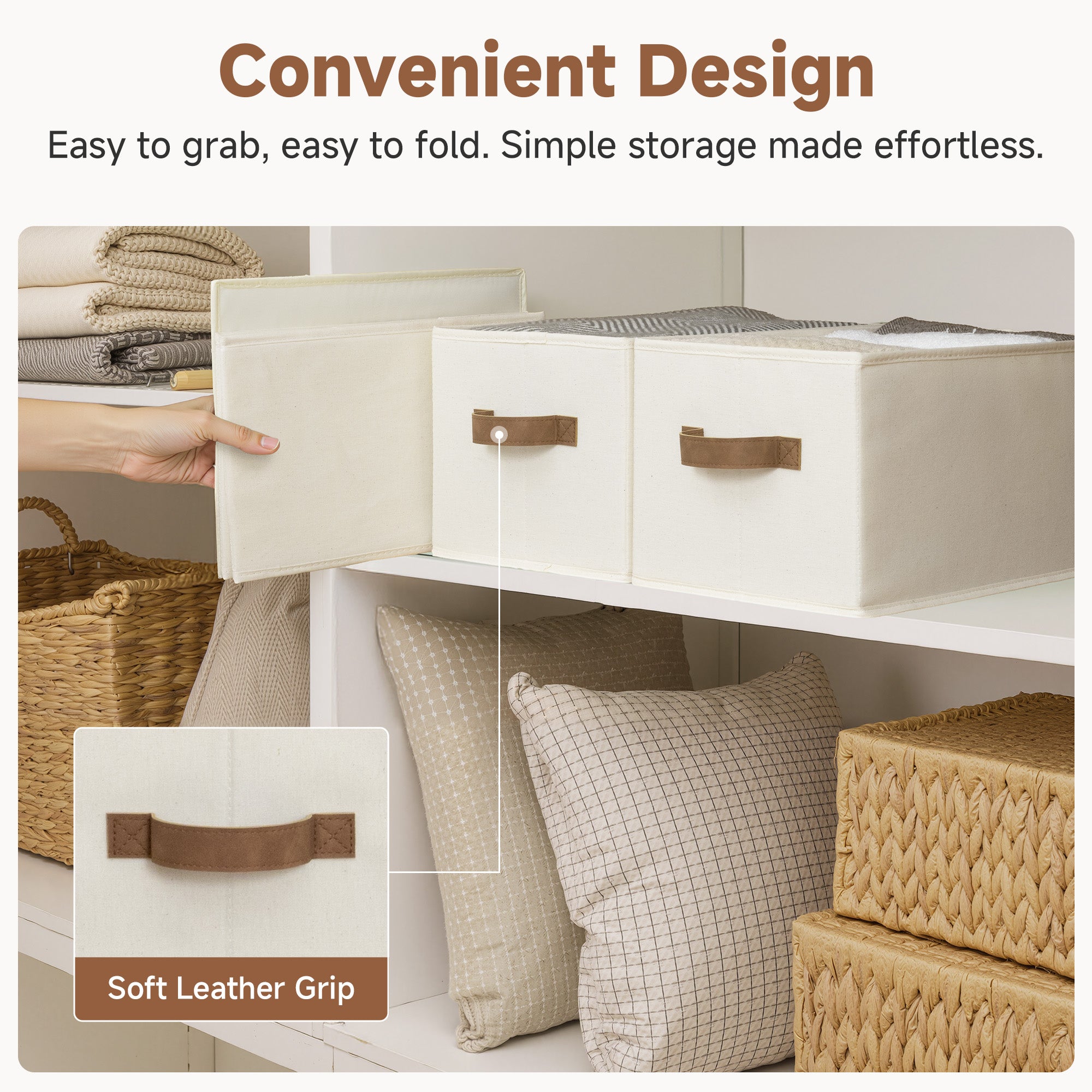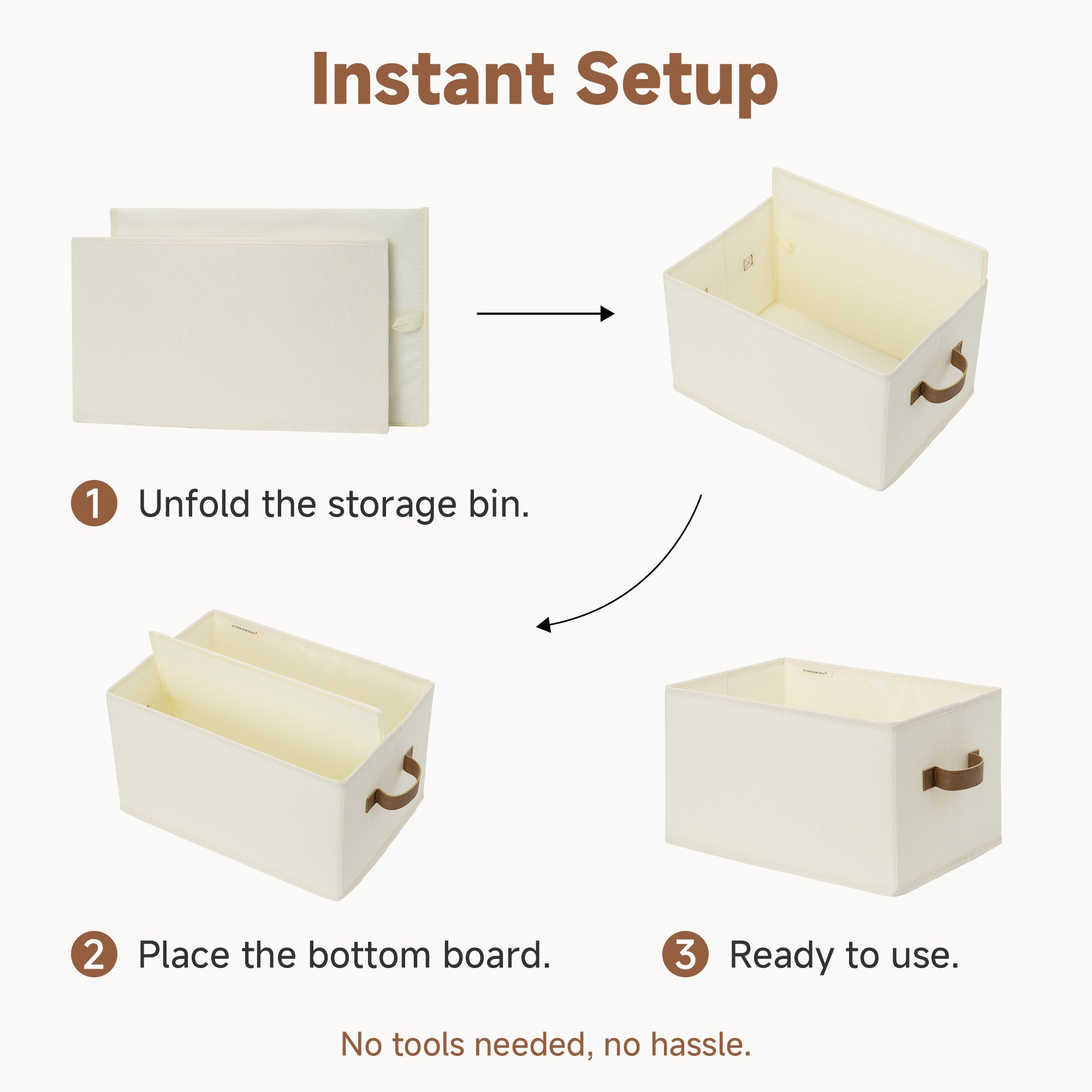 - Storage baskets with two sewn-in PU handles for easy carrying around, and the label holder for easy marking and identifying the items inside.