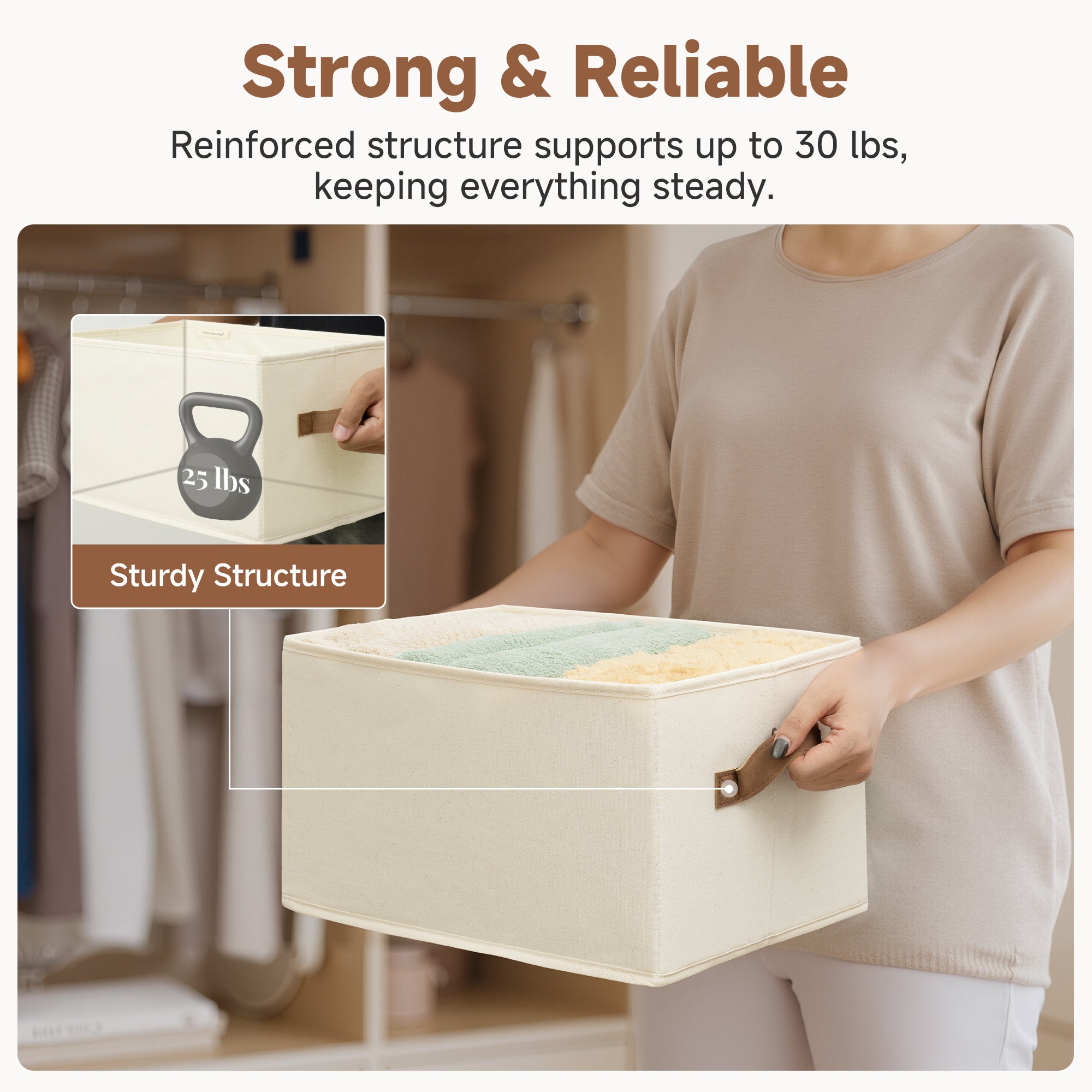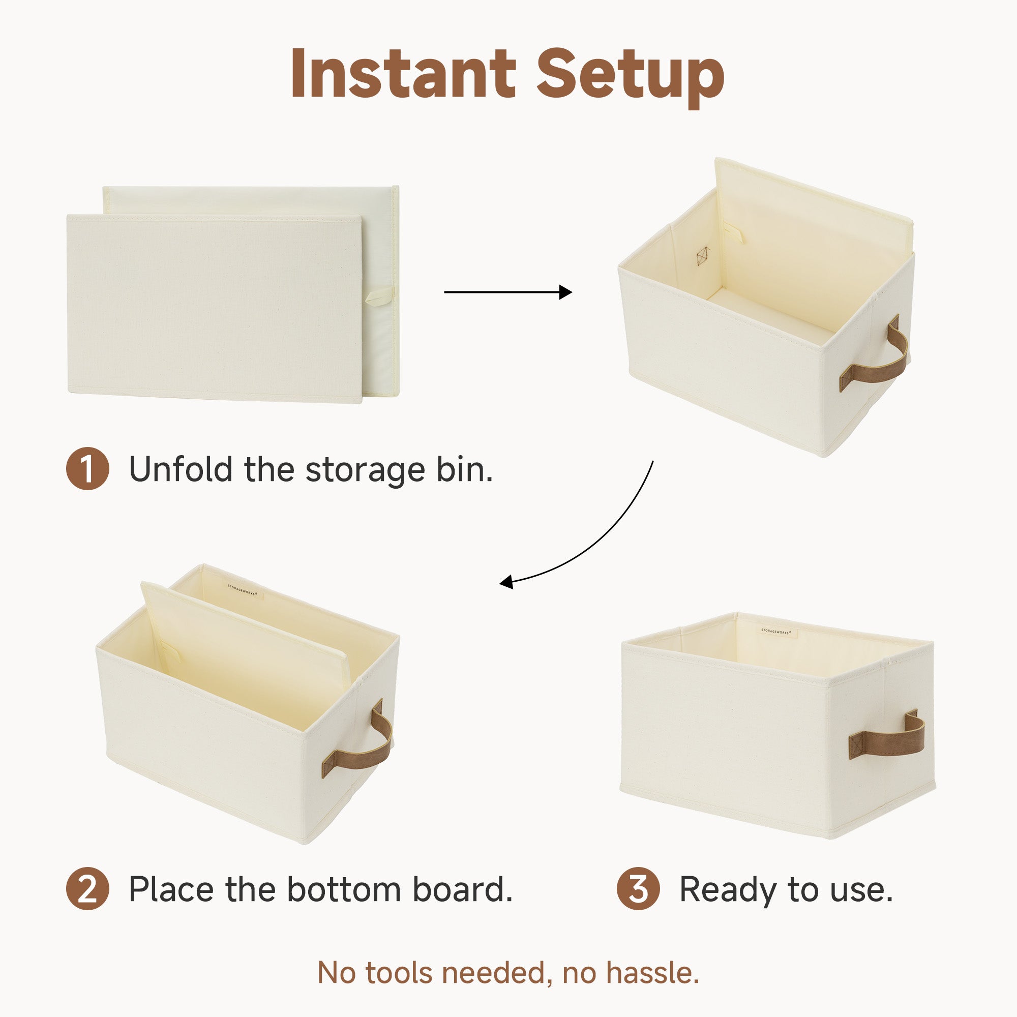 - The natural canvas fabric and the inserted heavy-duty boards of the storage bins allow them to support a weight of up to 30 pounds.