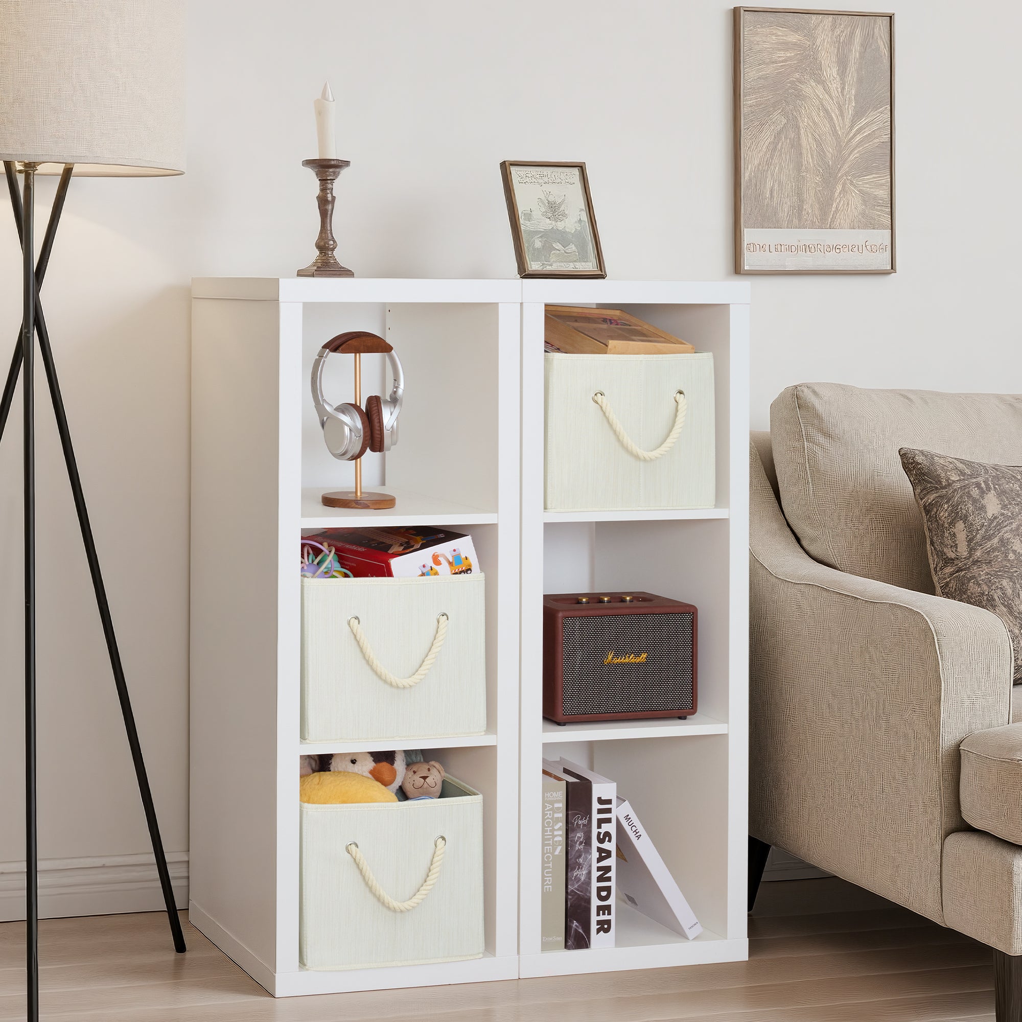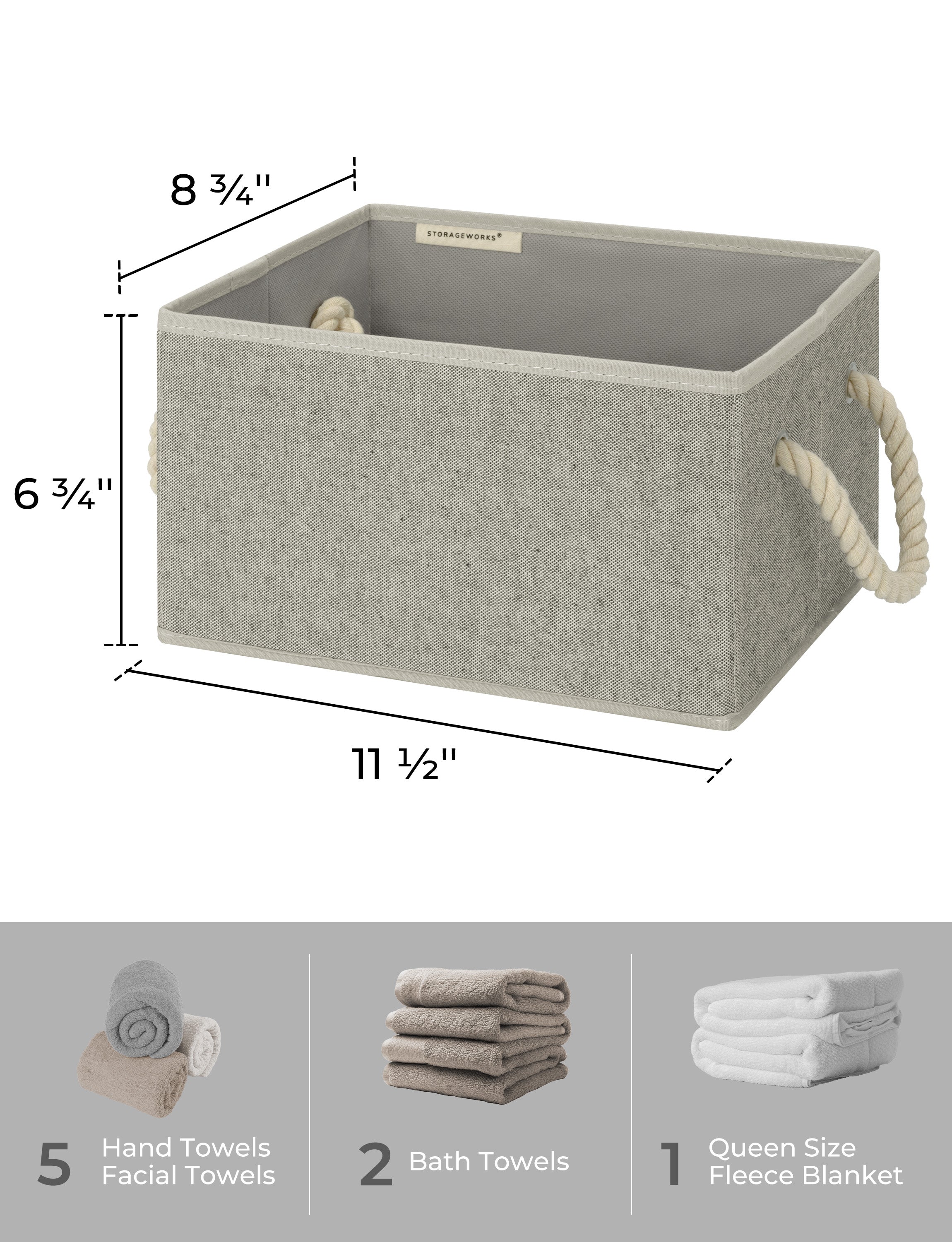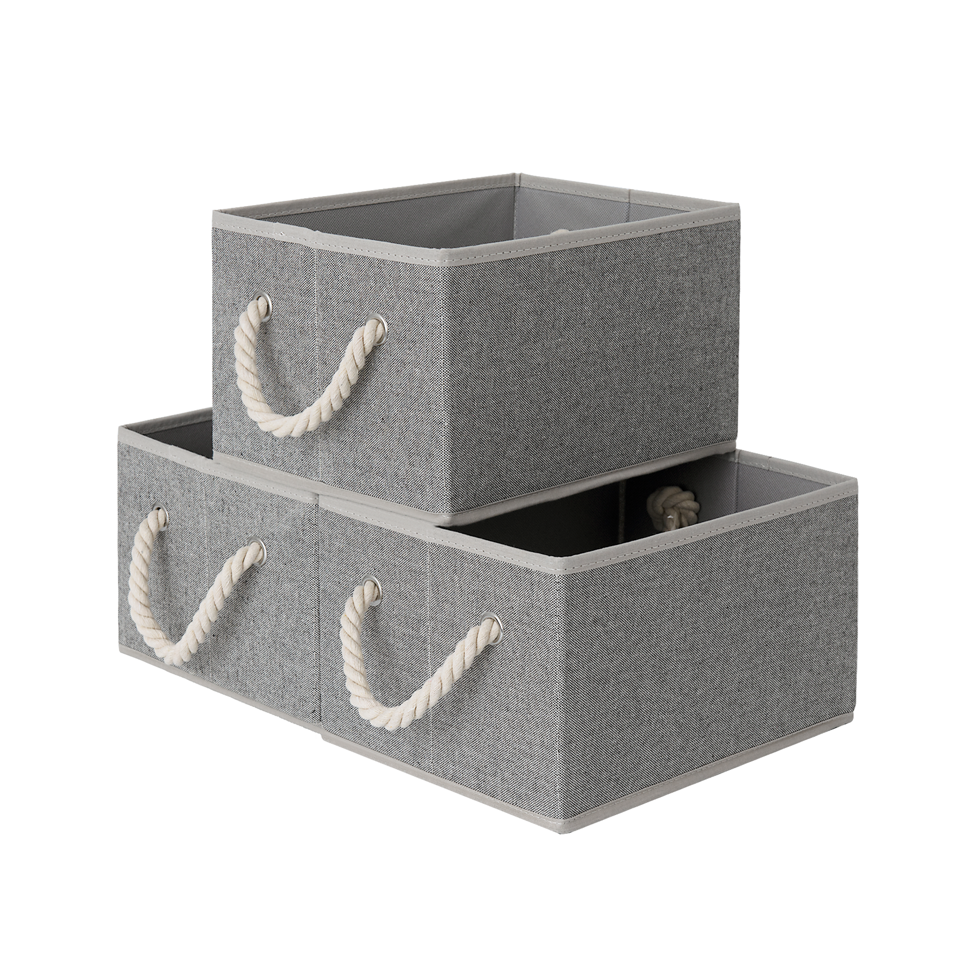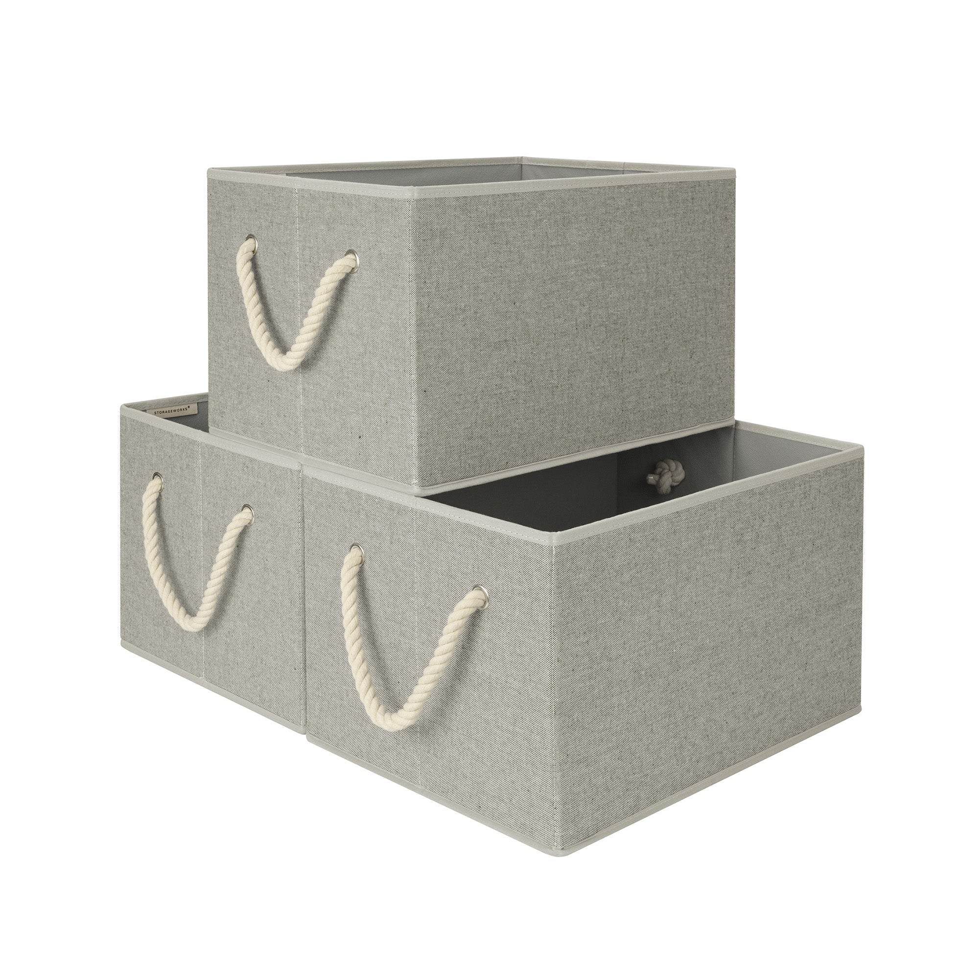 • Storage Baskets for Shelves, Cotton Rope Handles, 3 Packs
