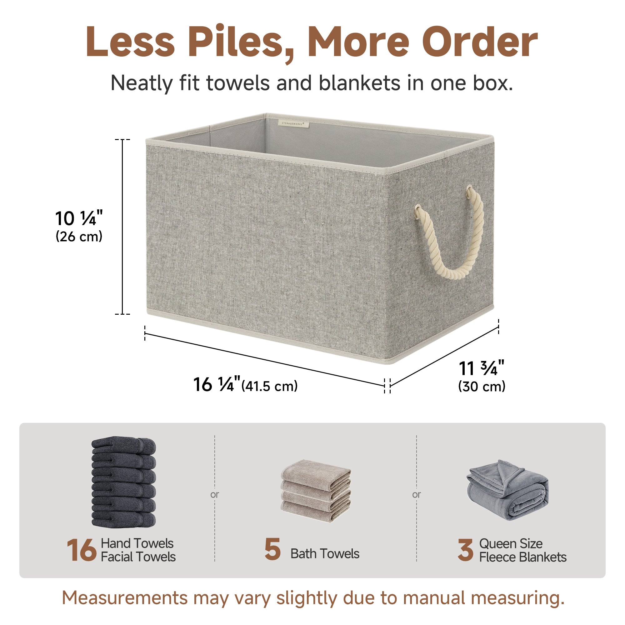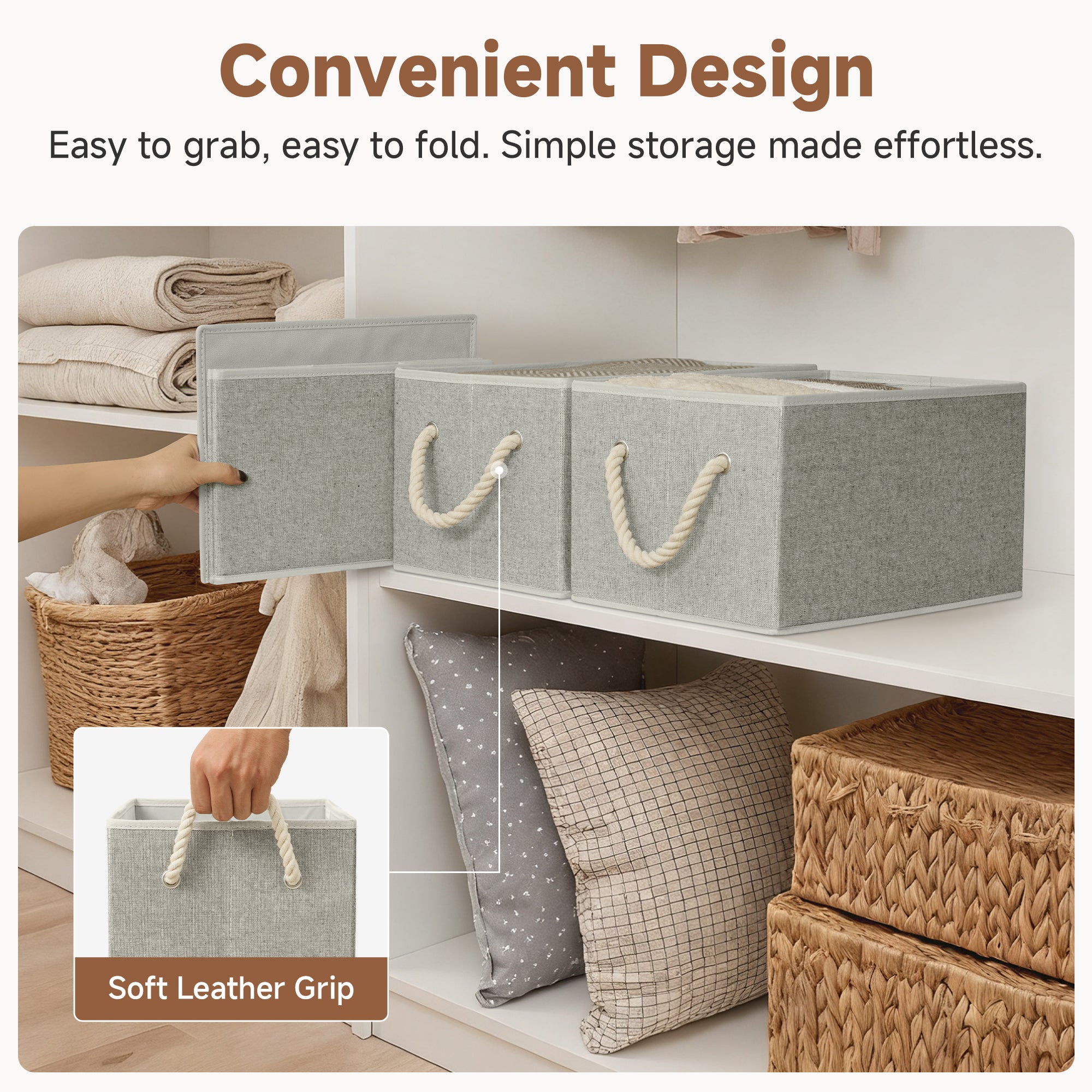 • Breathable and Sturdy Material: Crafted from high-quality material, these foldable storage bins are built to withstand everyday use, providing long-lasting durability while also offering a stylish touch.