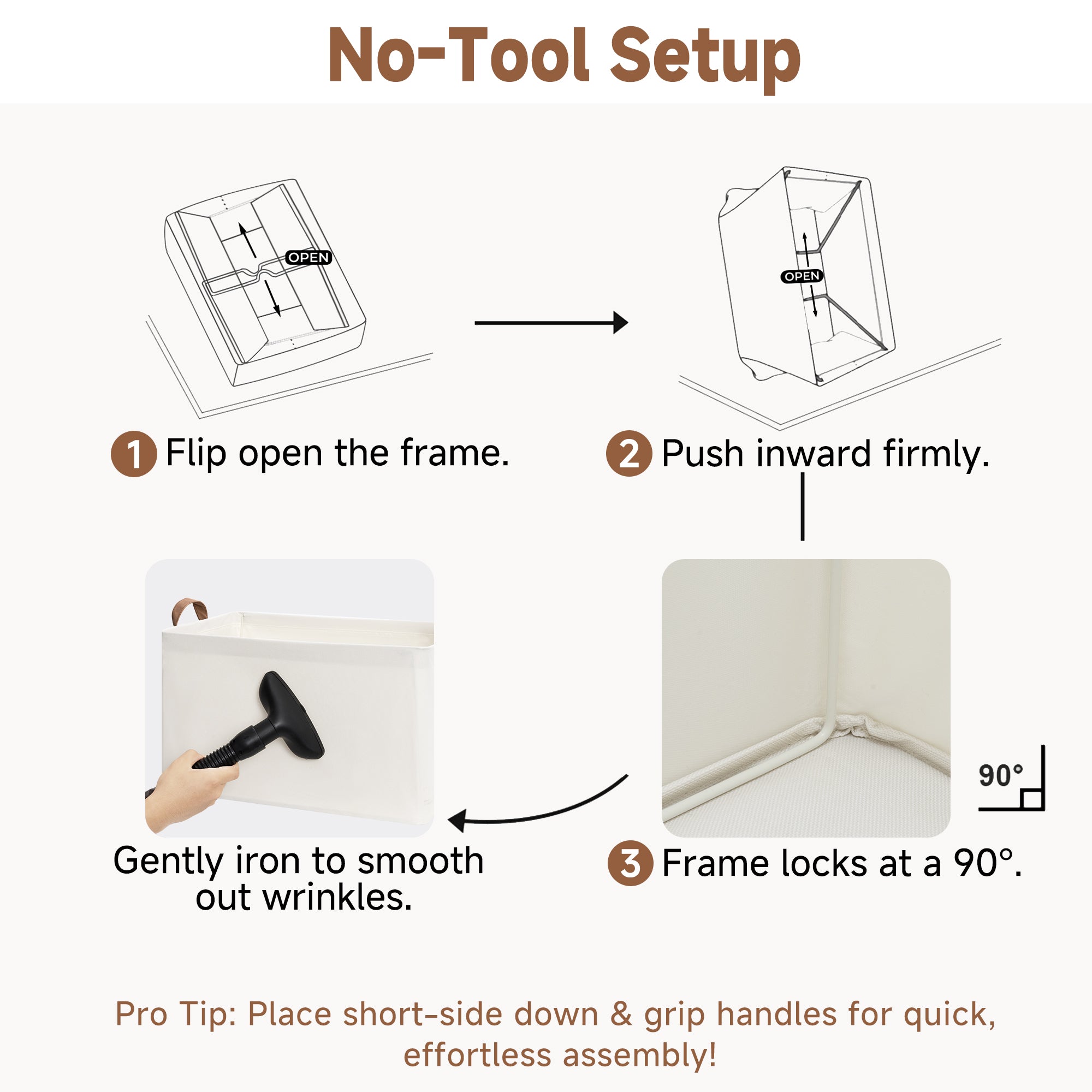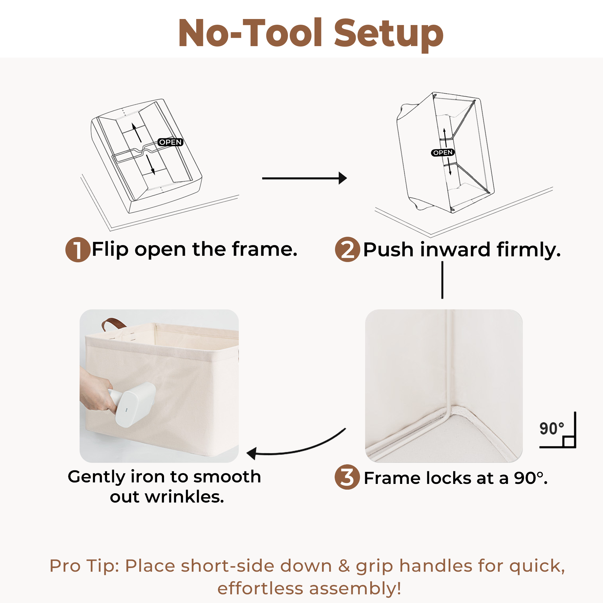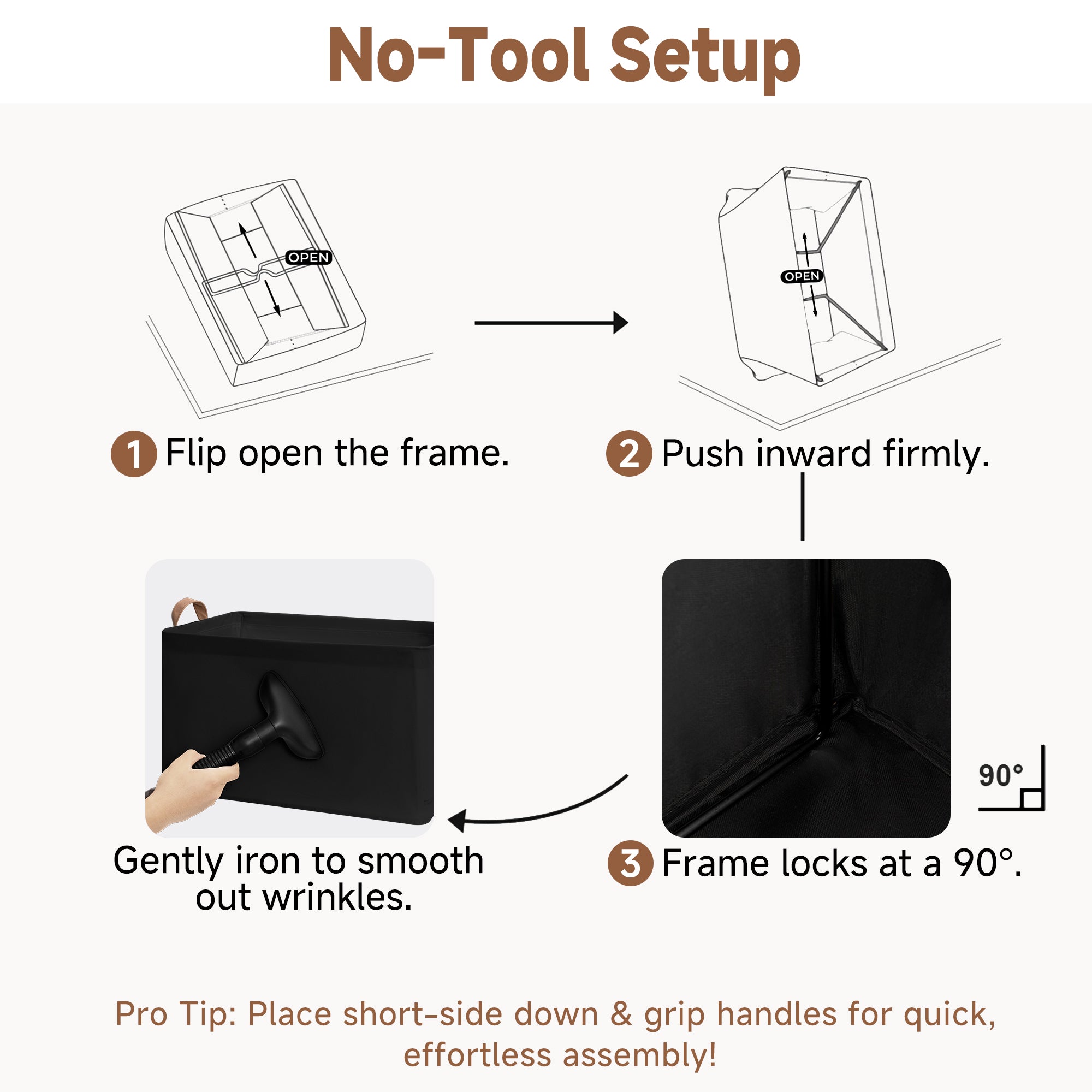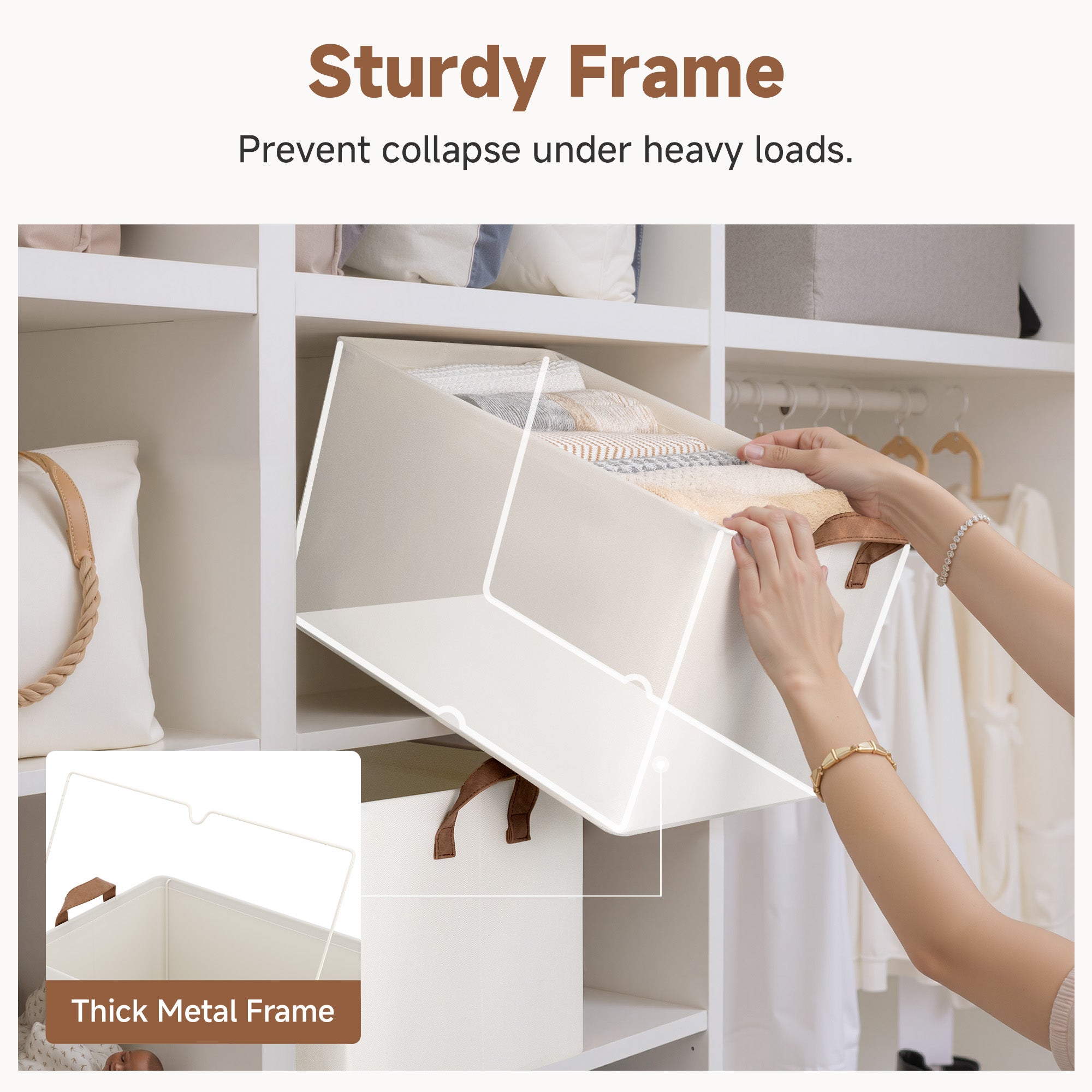 - Premium Quality: Made from high-quality fabric and reinforced with a heavy-duty MDF bottom board and a sturdy metal frame. The solid construction enables the storage bins to stand upright without support, even when empty.