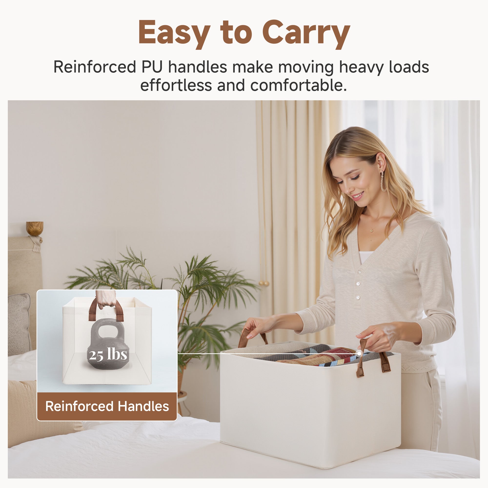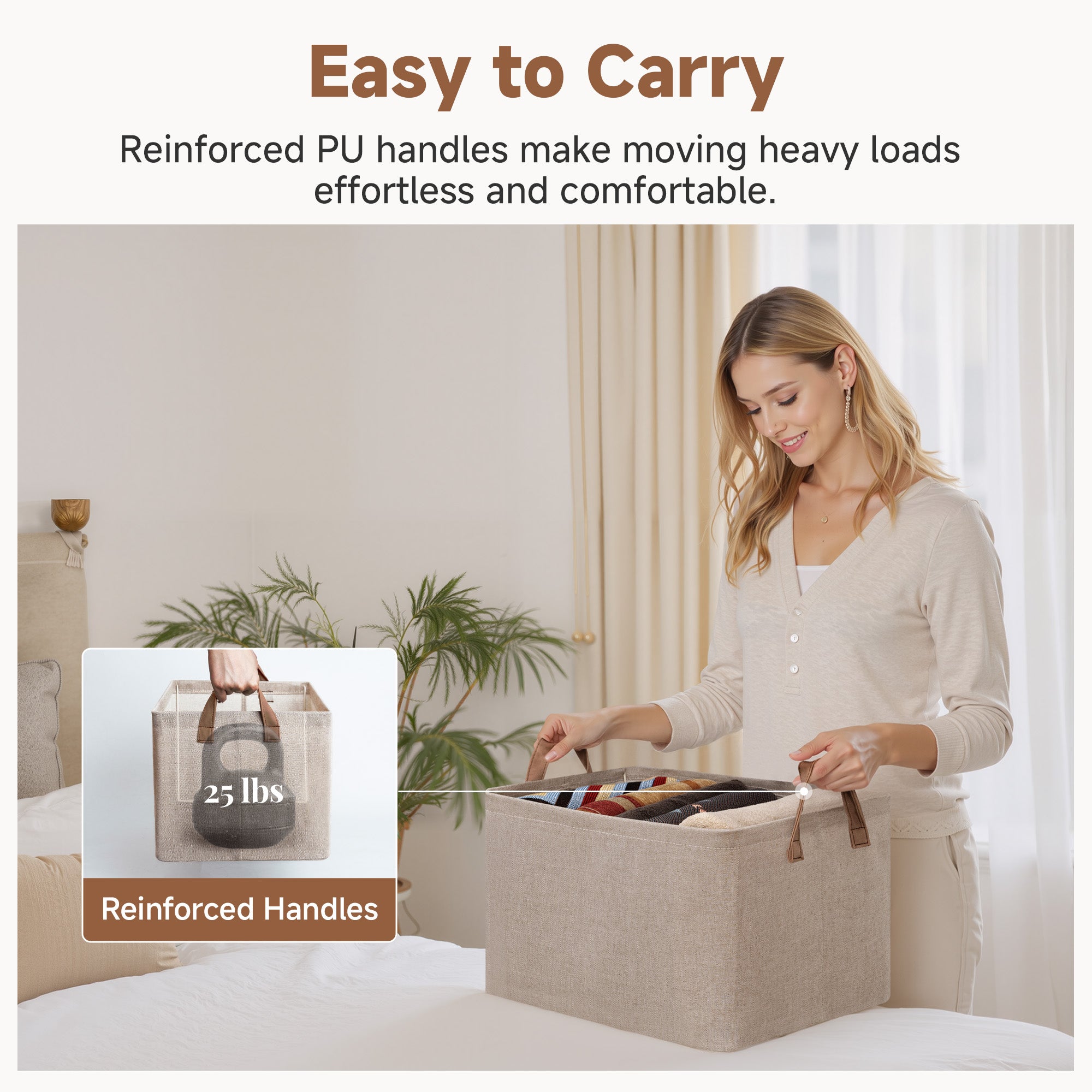 - Handle with Ease: With the 2 PU handles securely riveted to the sides of the storage bin, you can easily carry items without tearing the handles.