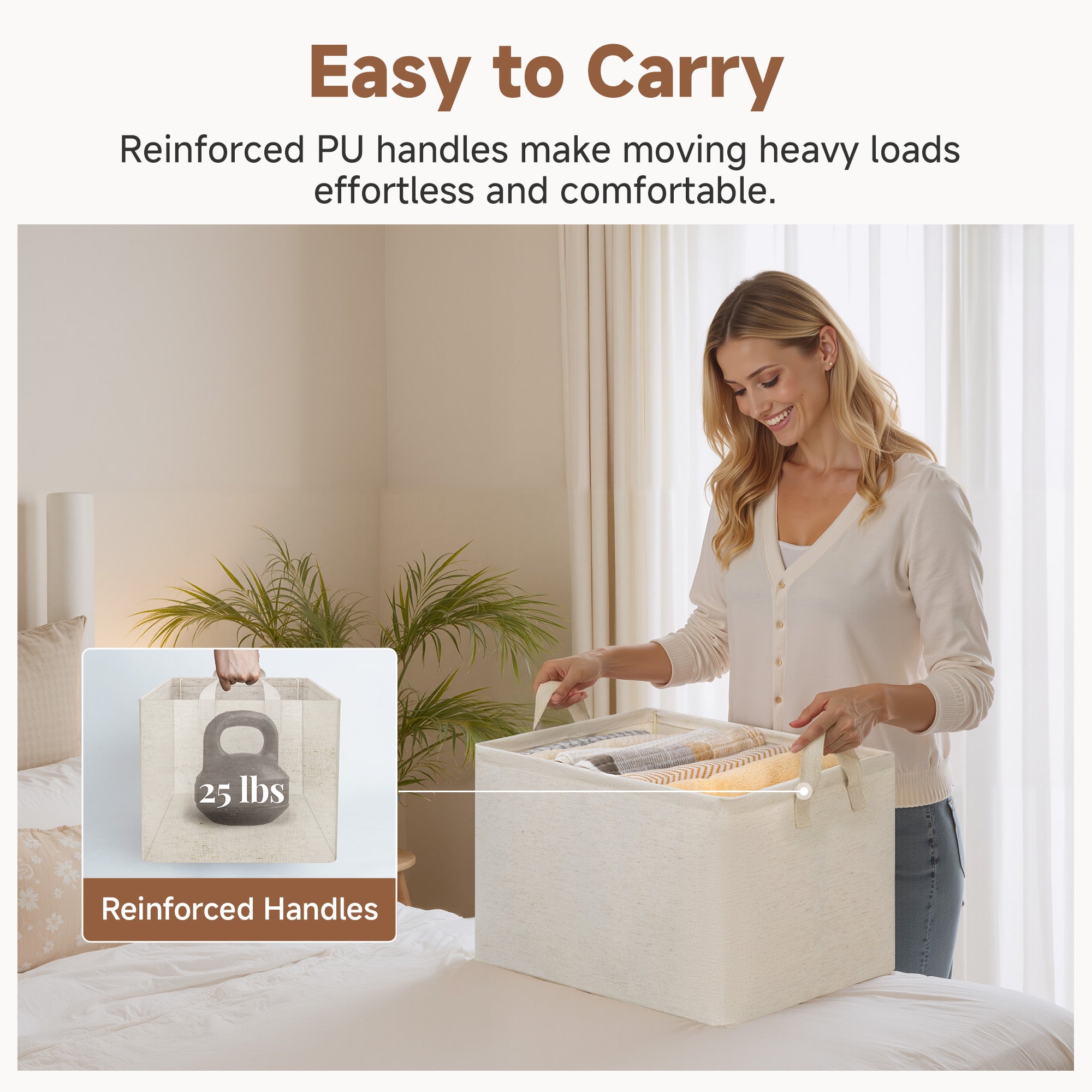 - Sturdy Structure: Built with Tianshan linen-blend fabric fabric, a reinforced MDF base, and a sturdy metal frame, these storage bins stand upright, even when empty.