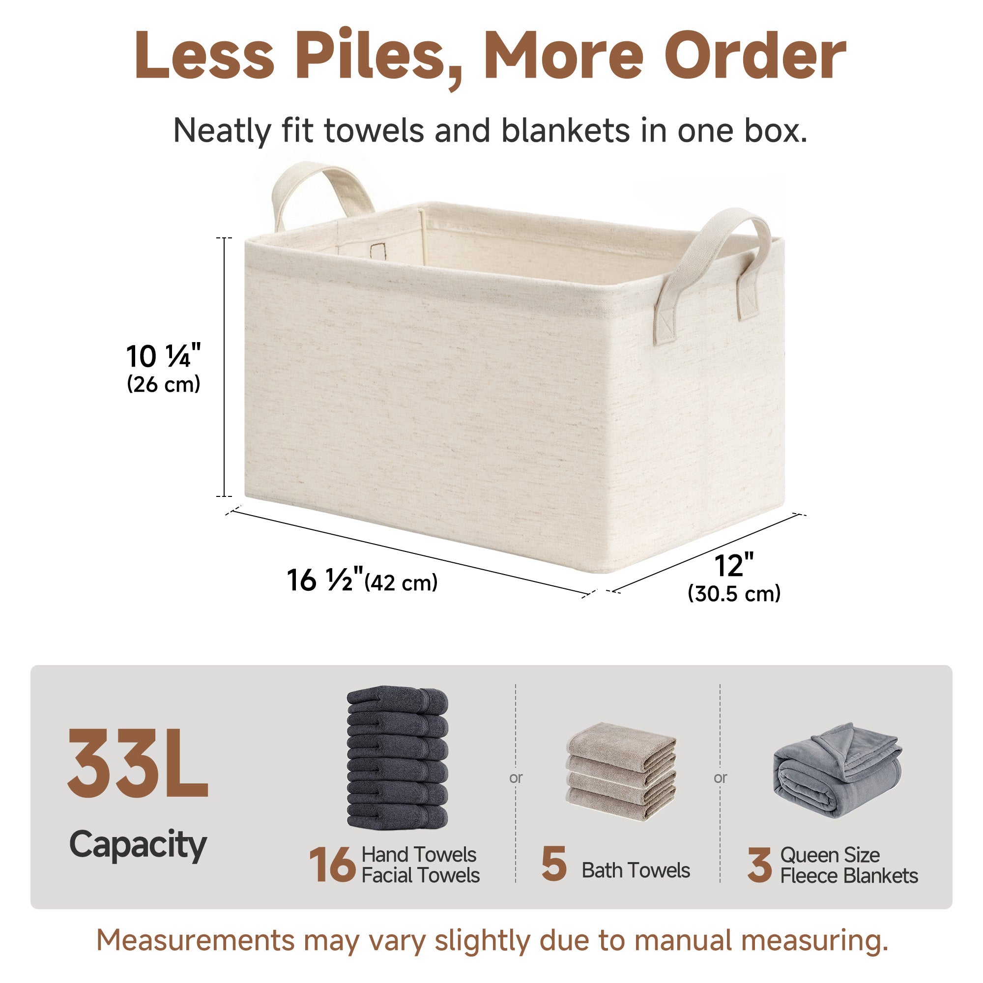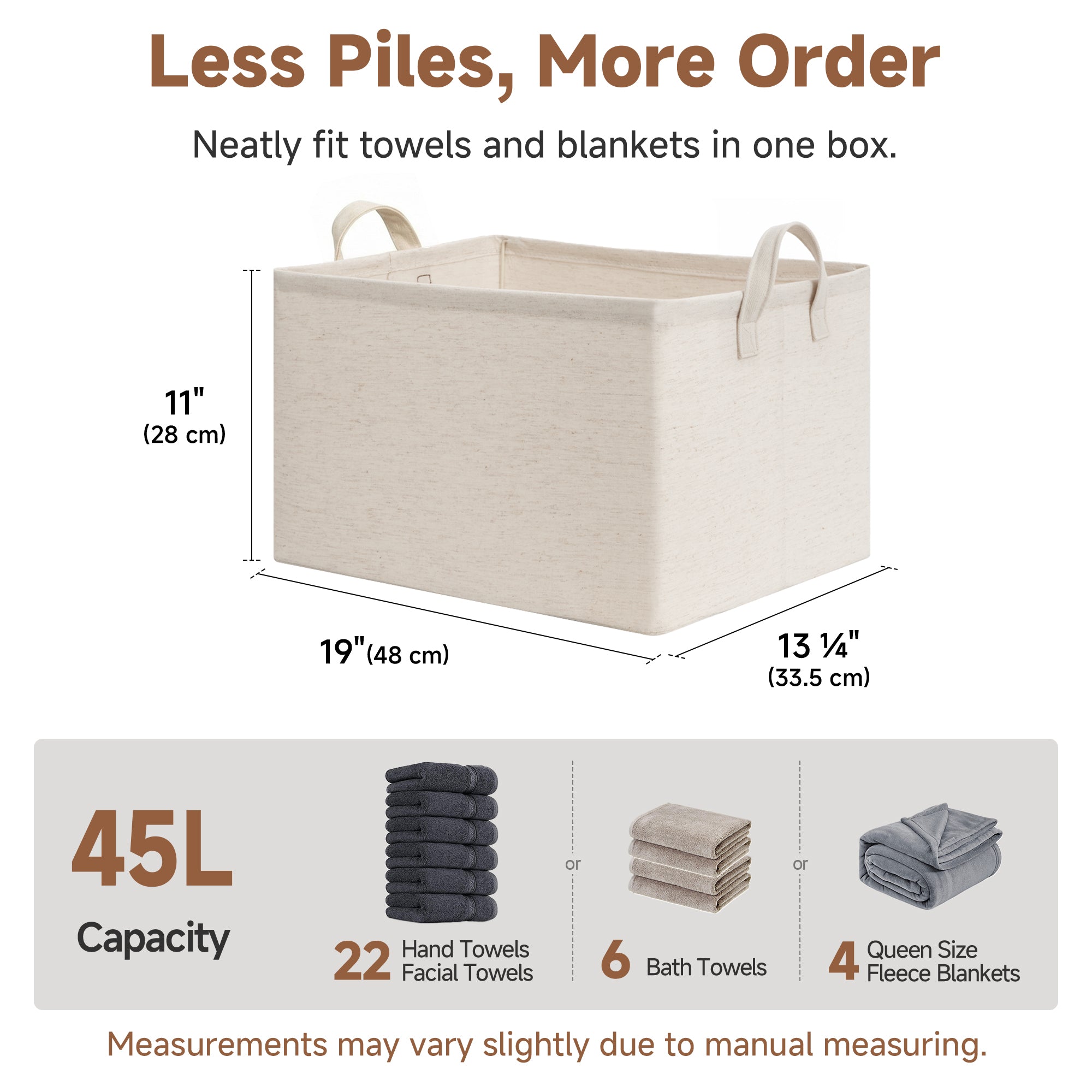 - Generous Capacity: Designed as large storage baskets for everyday organization and storage, they neatly hold clothes, towels, blankets, toys, and more.