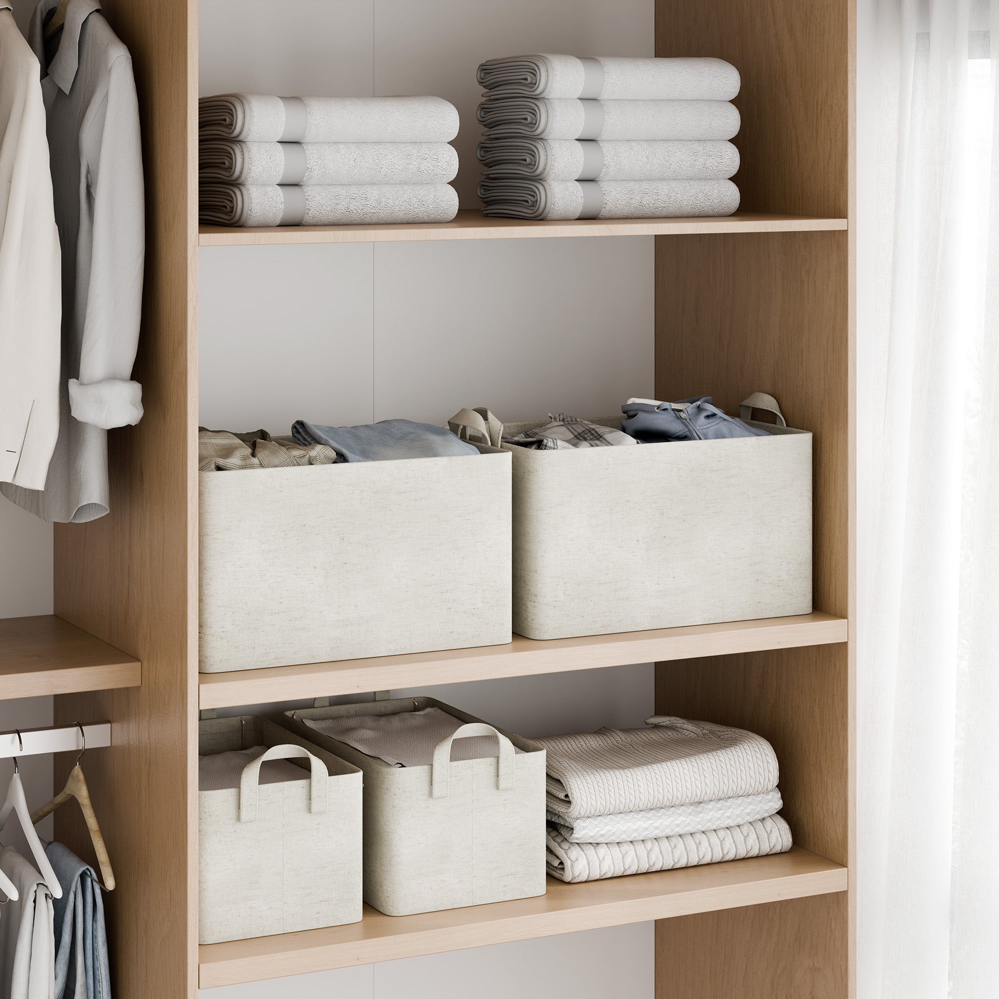 - Versatile Use: Ideal as baskets for shelves or closet storage bins, they help keep bedrooms, living rooms, laundry rooms, bathrooms, and dorms organized.