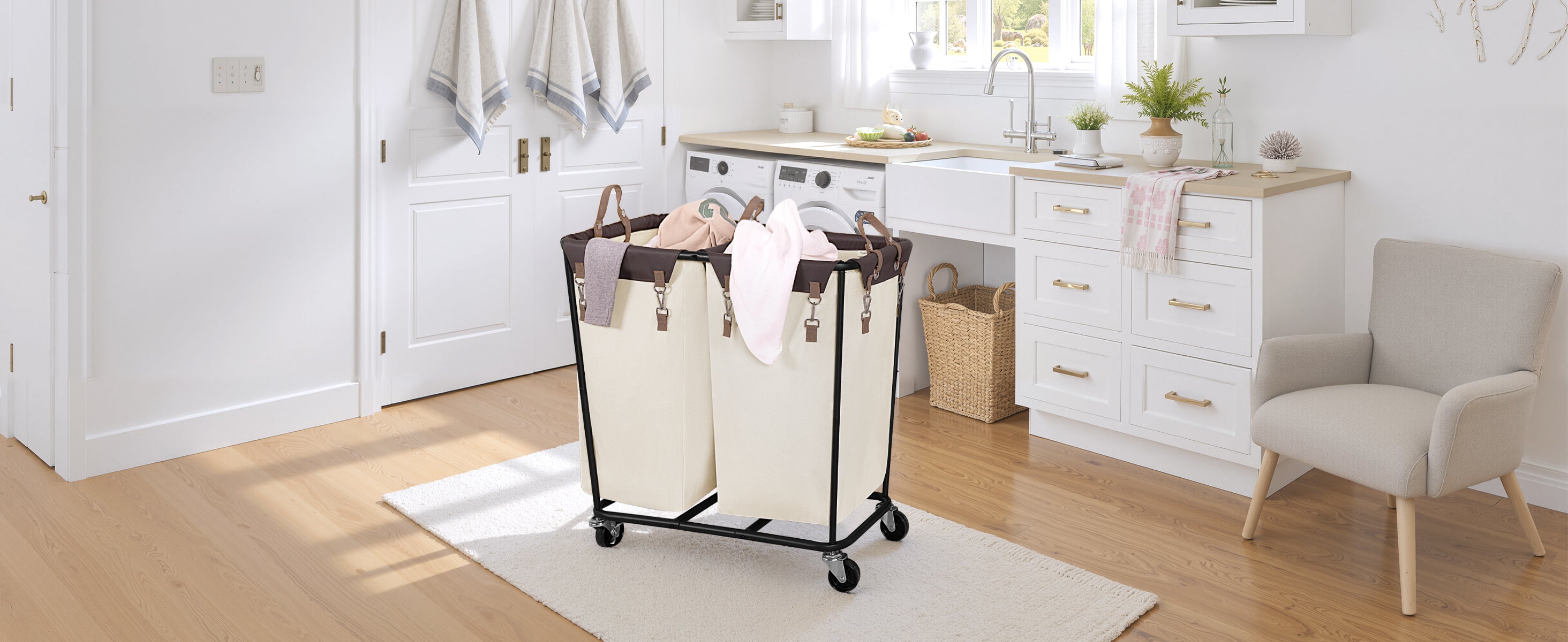- 2 Section Design: You can easily sort dark and light clothes, and better separate dry and wet items or adult and children's clothes. This laundry sorter cart with 2 sections has multiple storage functions, which helps to classify scattered items and make your room neat and orderly.