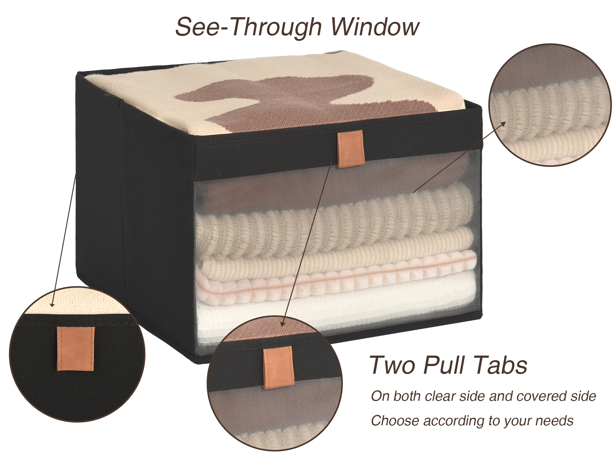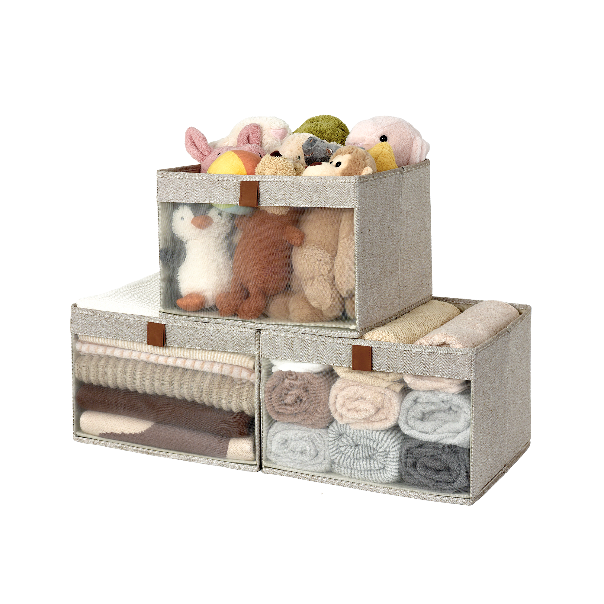 - The see-through window of the fabric shelf bins is made of highly breathable PVC mesh fabric with no chemical smell.