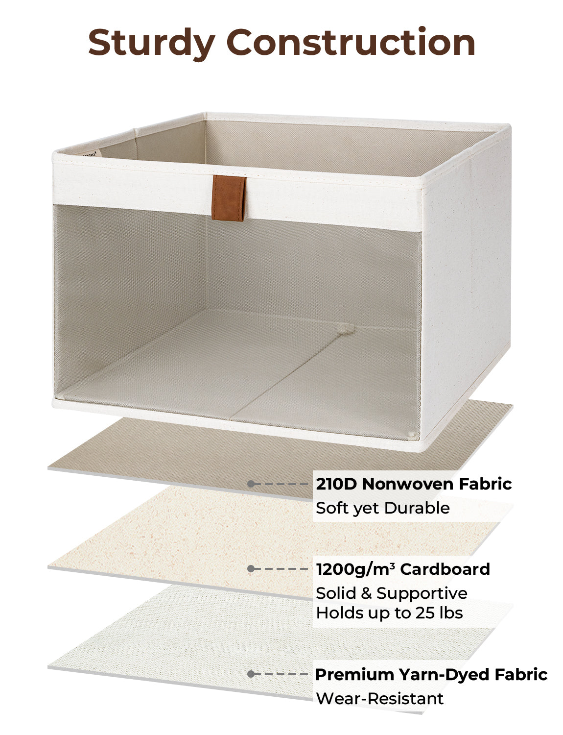 - 2 thickened pull-tab handles of the storage baskets for shelves make for easy retrieval of the drawers.