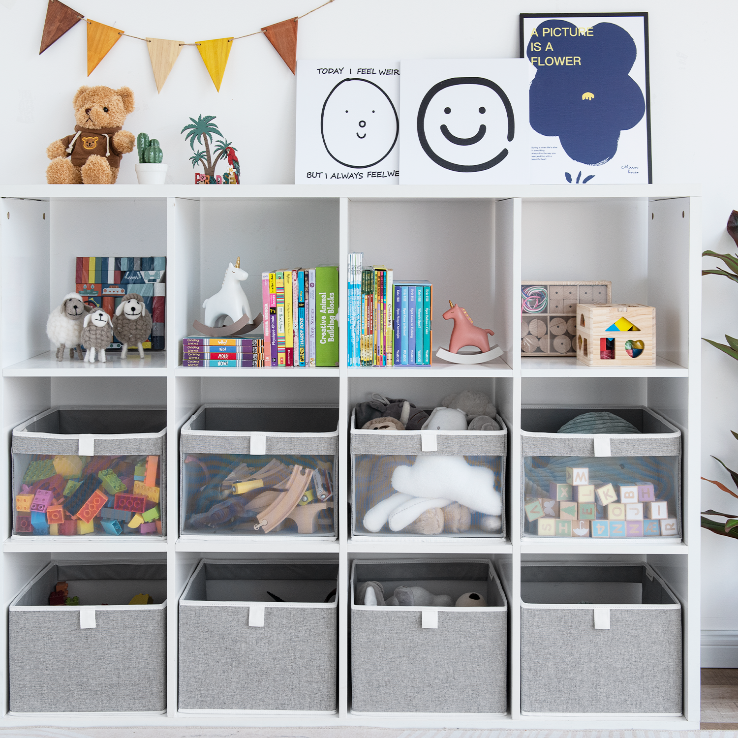 - Storage bins for shelves, closets, wardrobes, cube cabinets, end tables, bedrooms, kids' rooms, playrooms, nurseries, living rooms, etc.