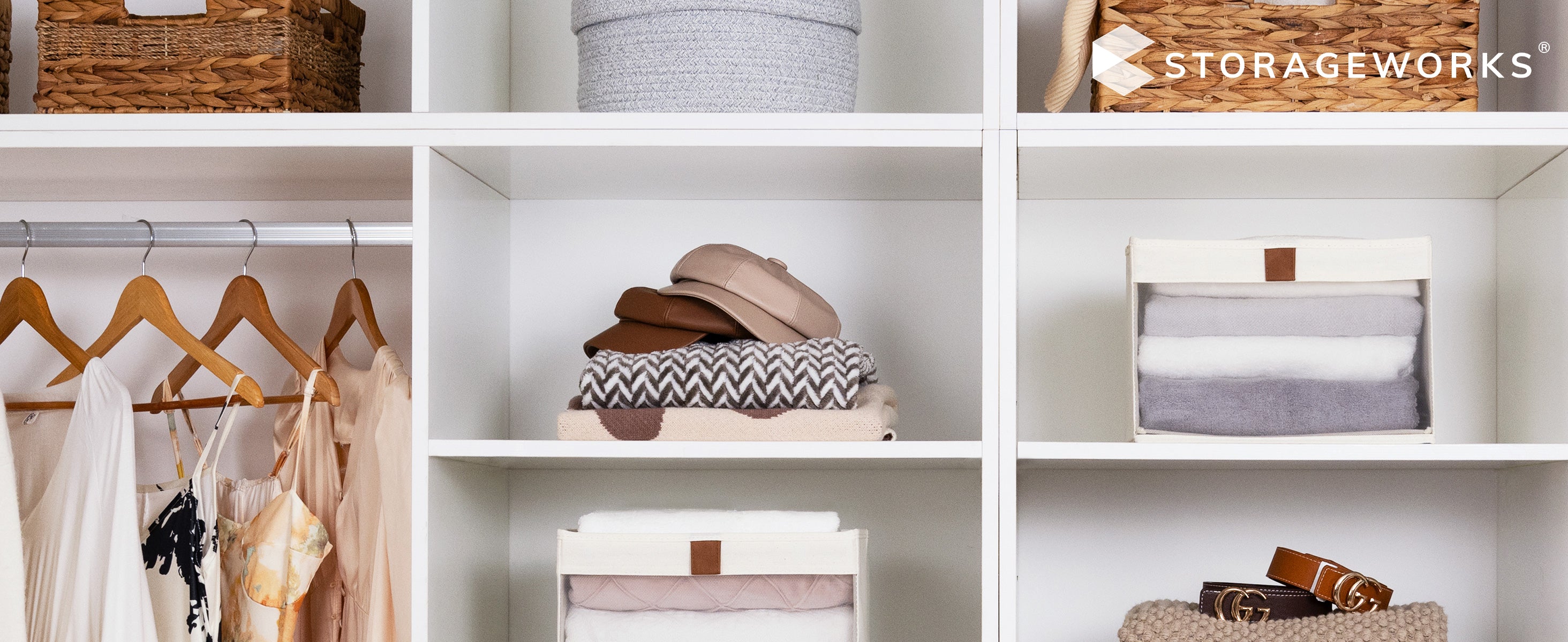- Baskets for organizing match perfectly with other StorageWorks hanging organizers.