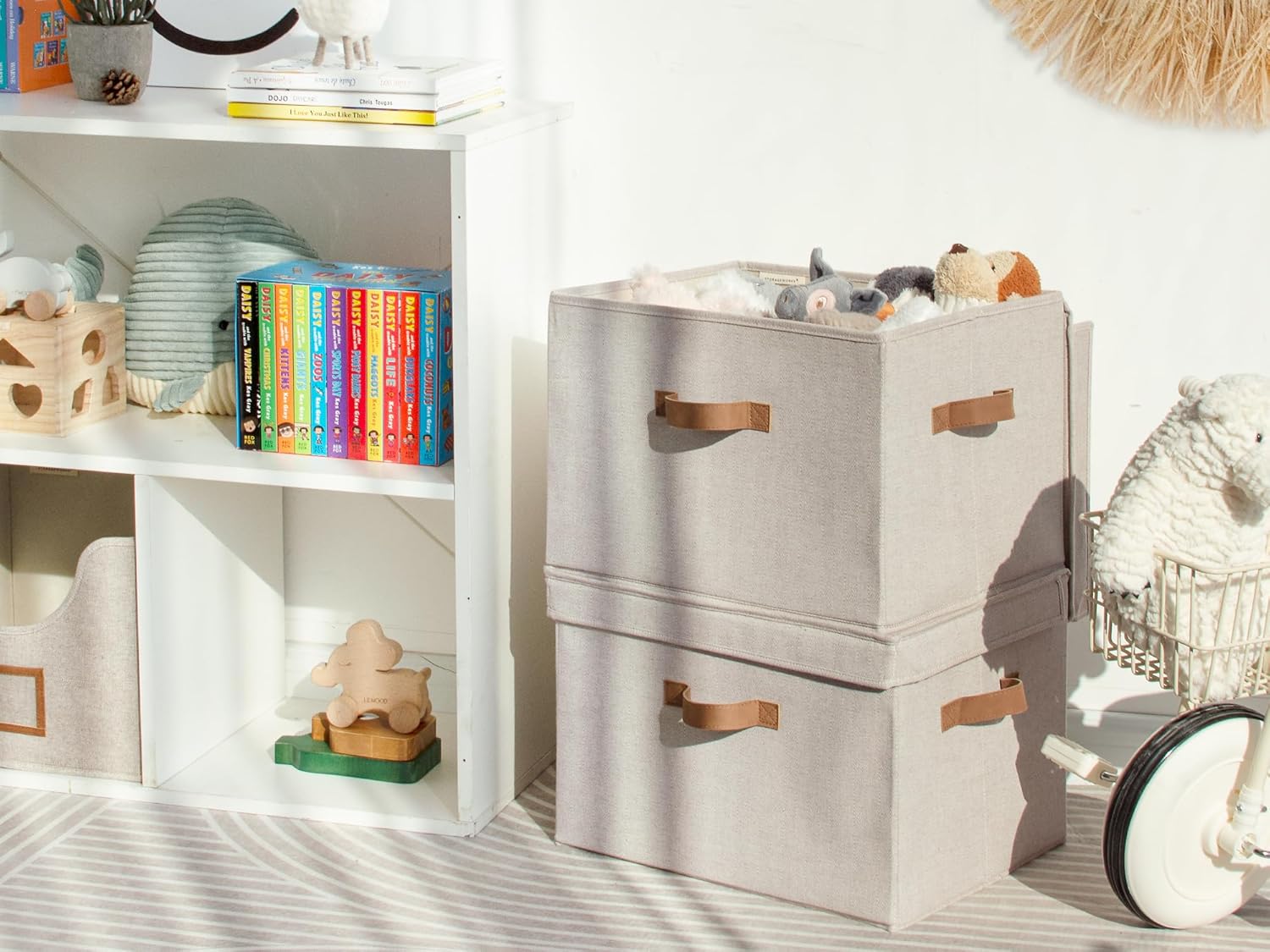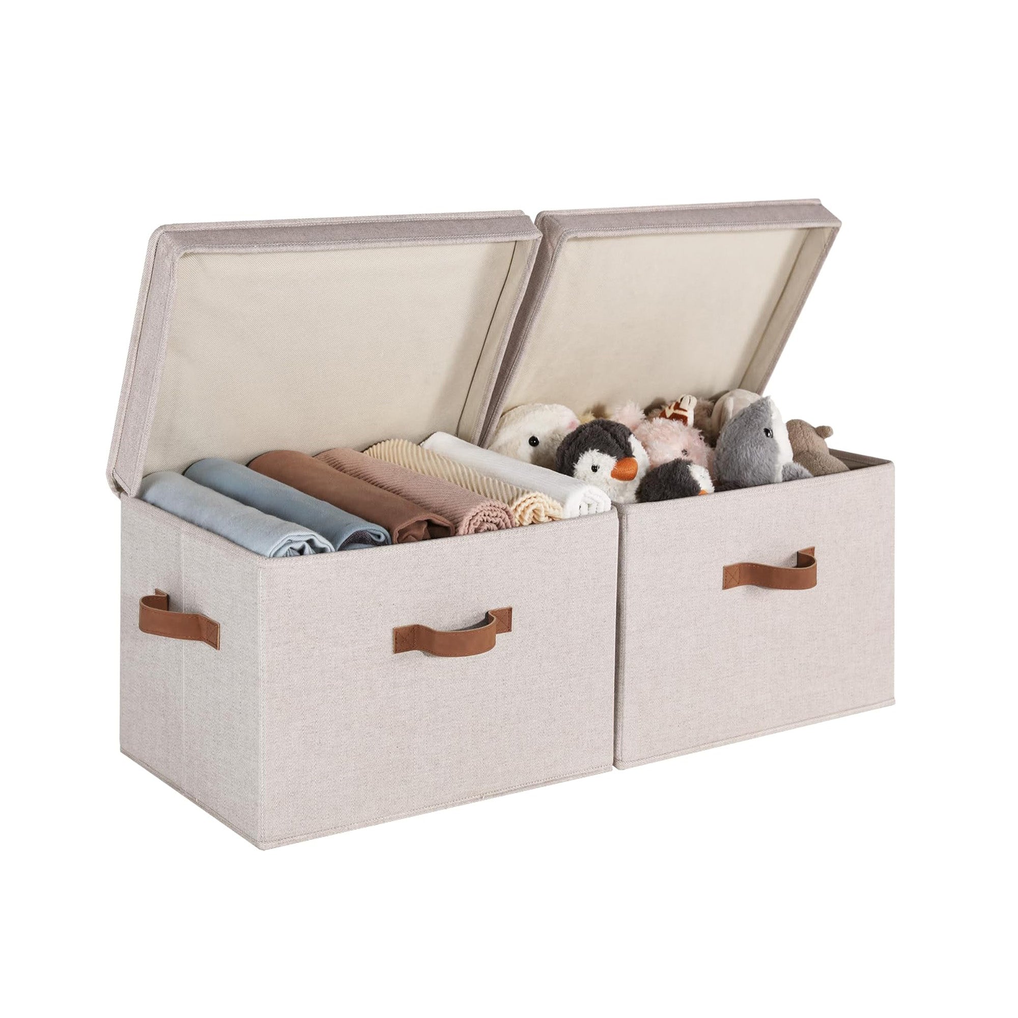 Storage baskets with lids reinforced with heavy-duty boards can support a weight of up to 25 lbs.