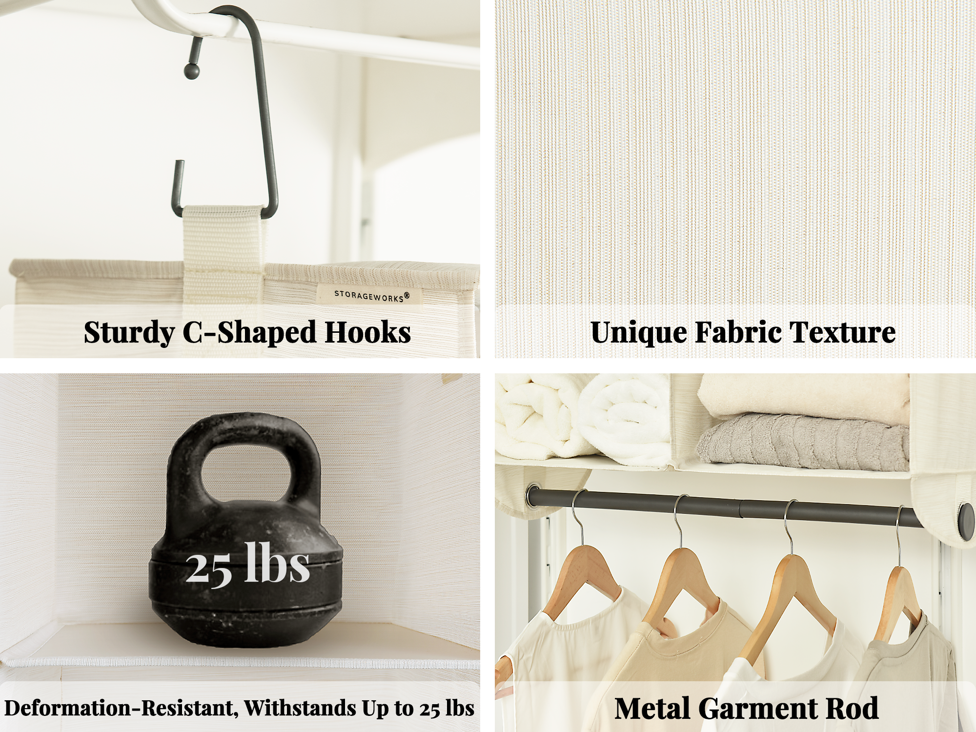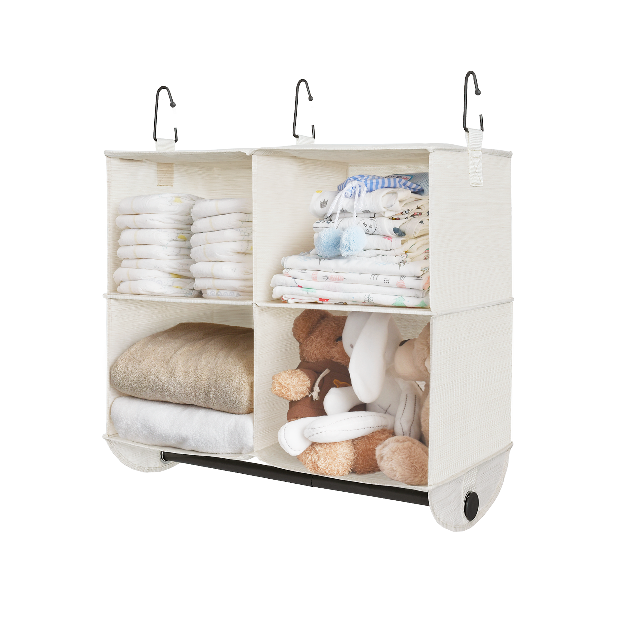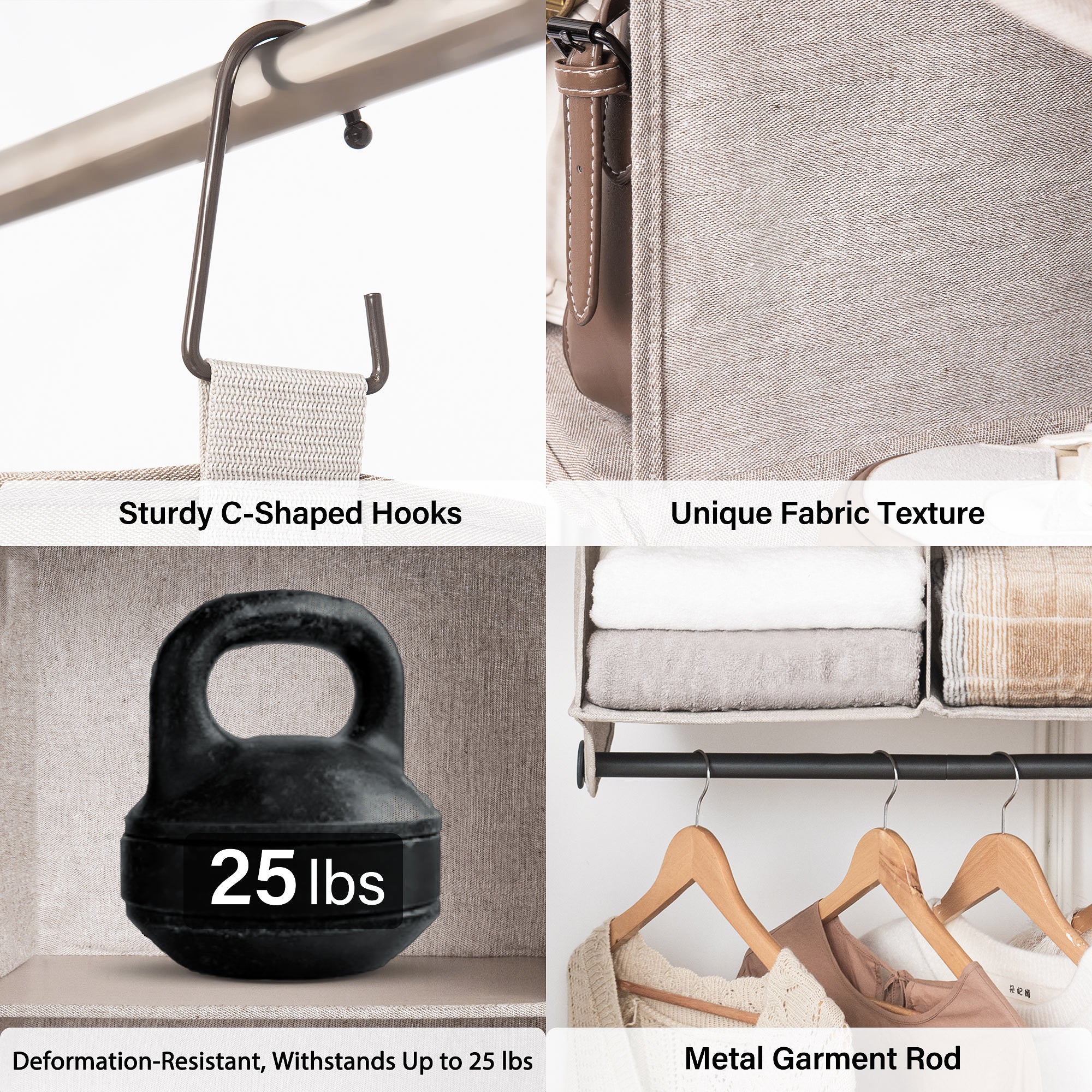 With Solid Rod: The sturdy metal garment rod of the hanging closet storage provides extra hanging space for sweaters, scarves, shirts, dresses, pants, hats, shoes, and handbags.