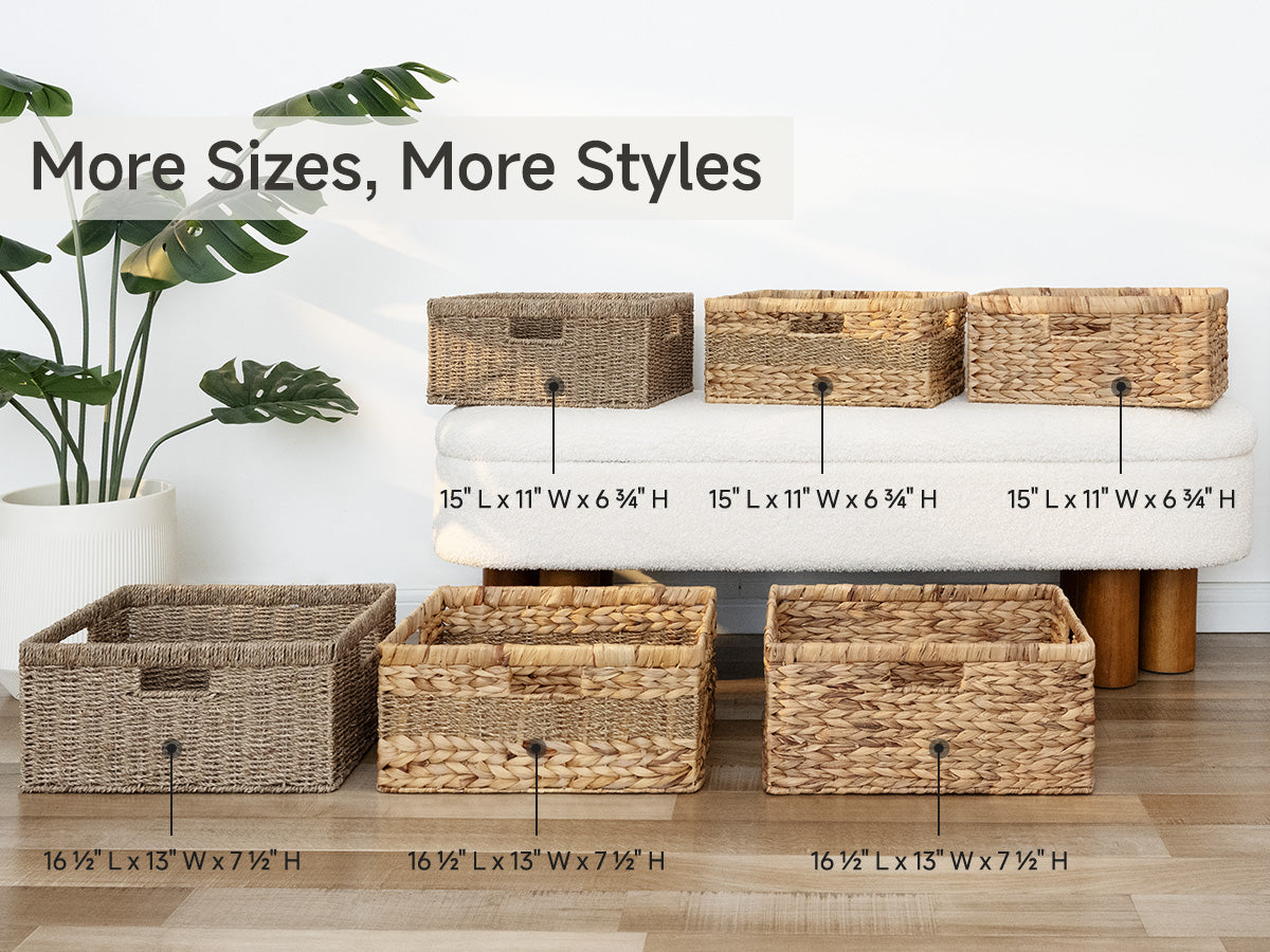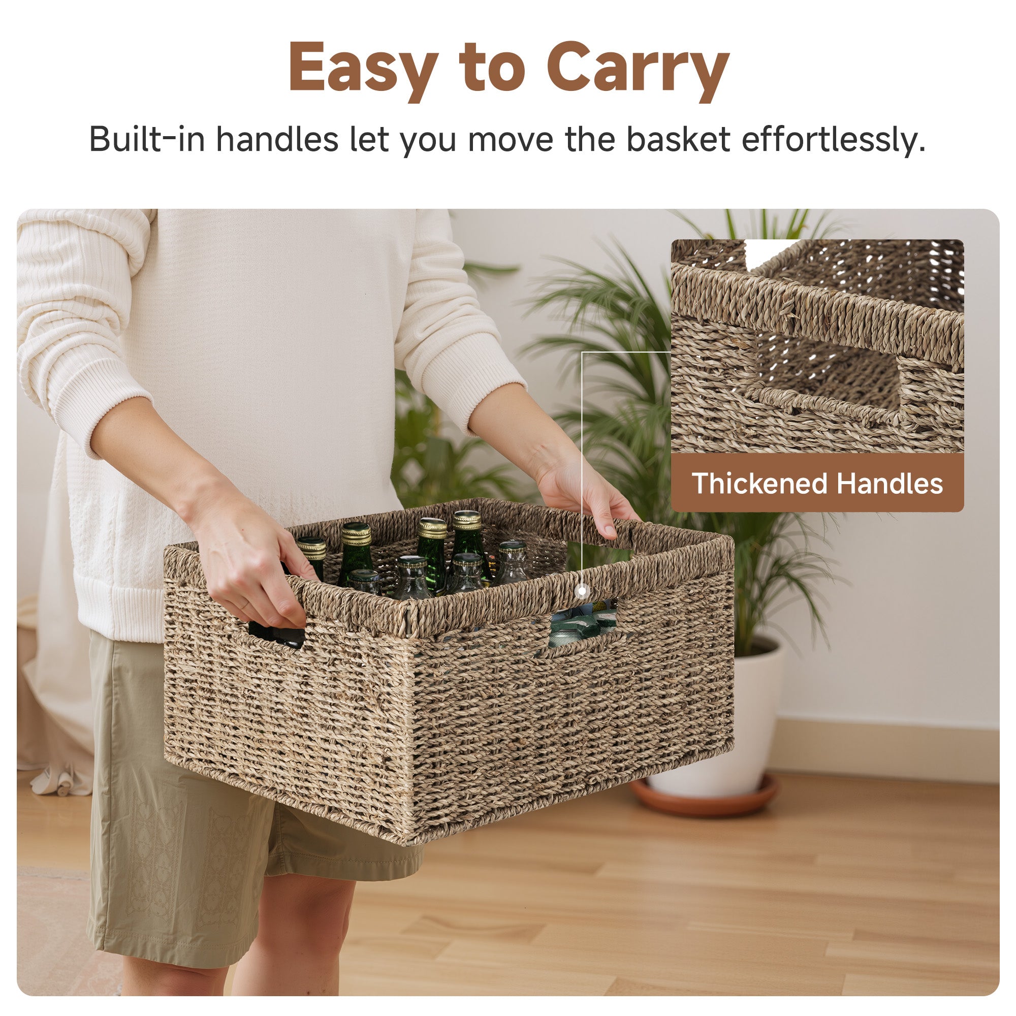 • Large Rectangular Seagrass Basket with Built-in Handles, 1 Pack
