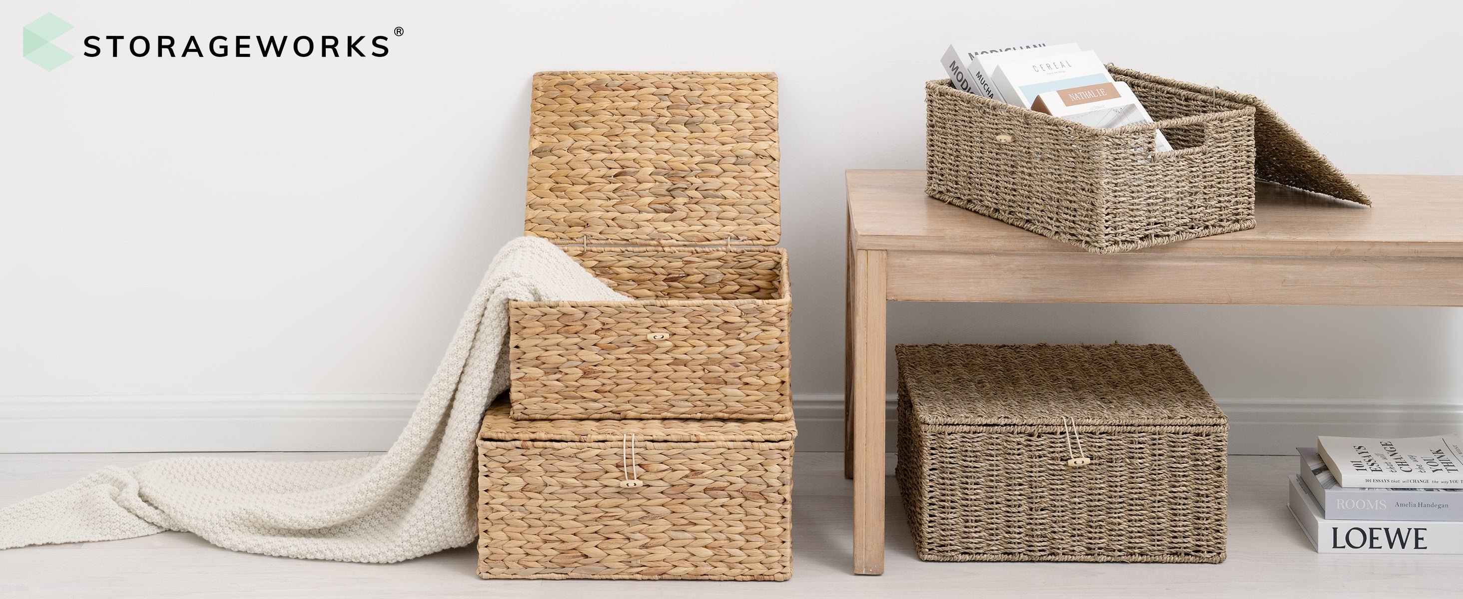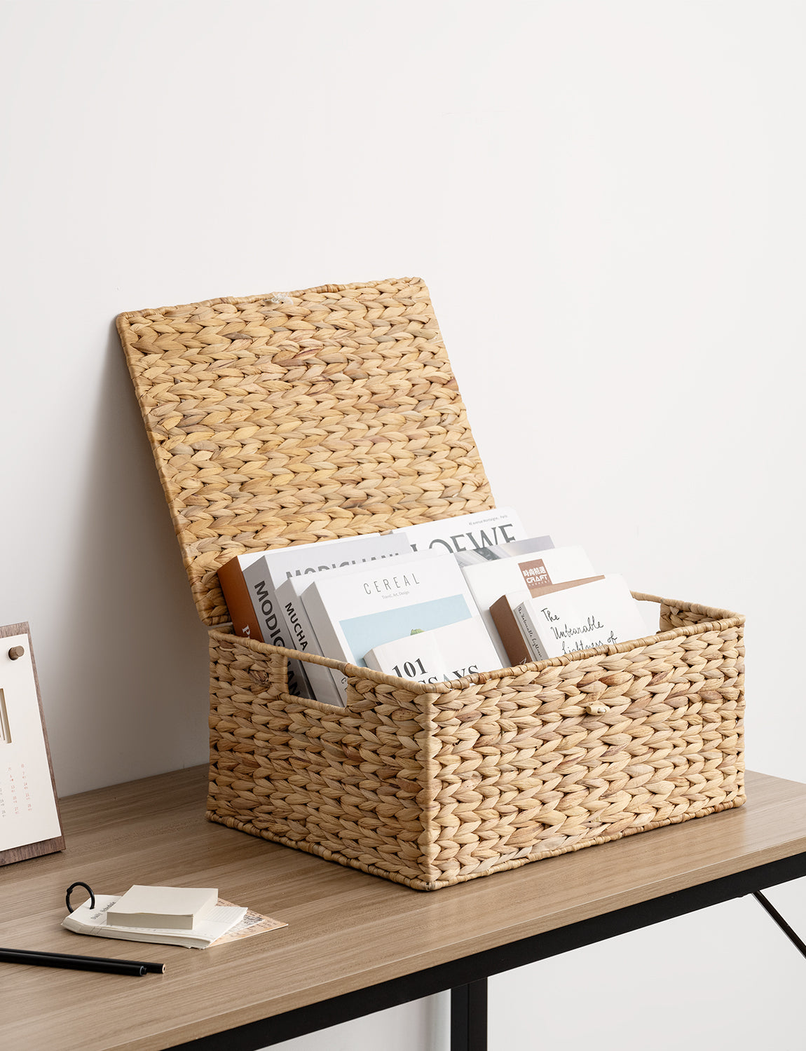 • Wicker Basket with Lid and Built-in Handles, Storage Basket for Organizing