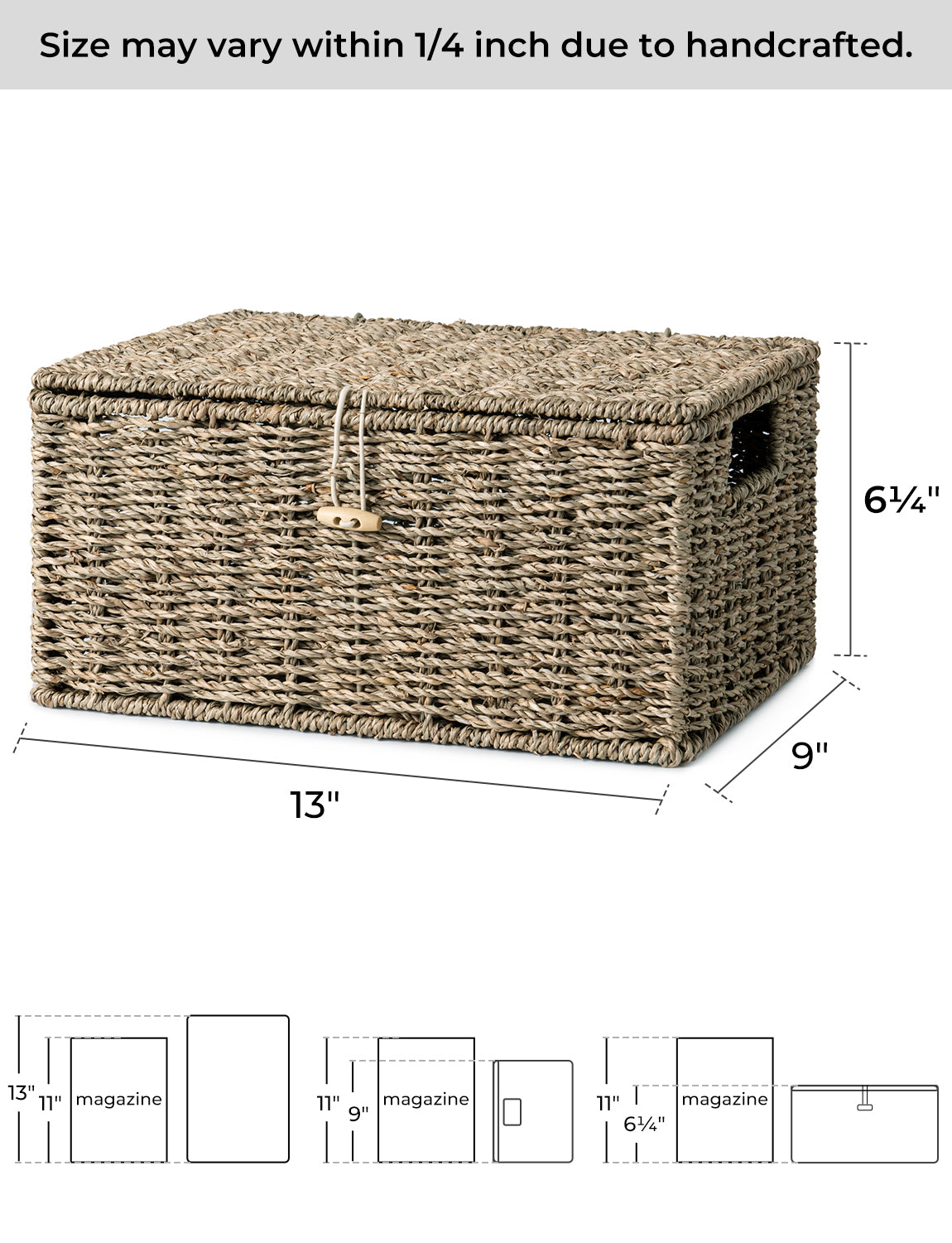 The medium basket with a lid comes in 1 pack with a dimension of 13"L x 9"W x 6 ¼"H.