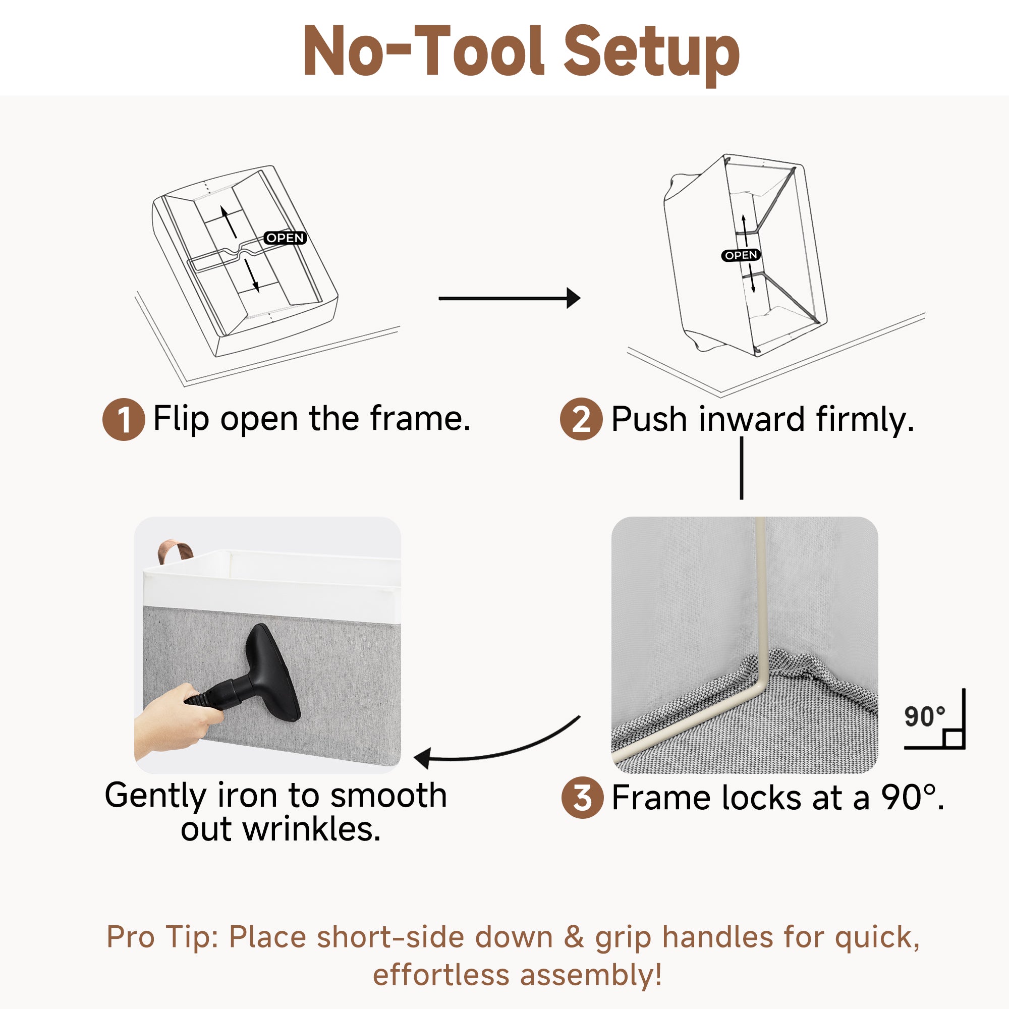 - Sturdy Structure: Built with durable fabric, a reinforced MDF base, and a sturdy metal frame, these storage bins stand upright, even when empty.