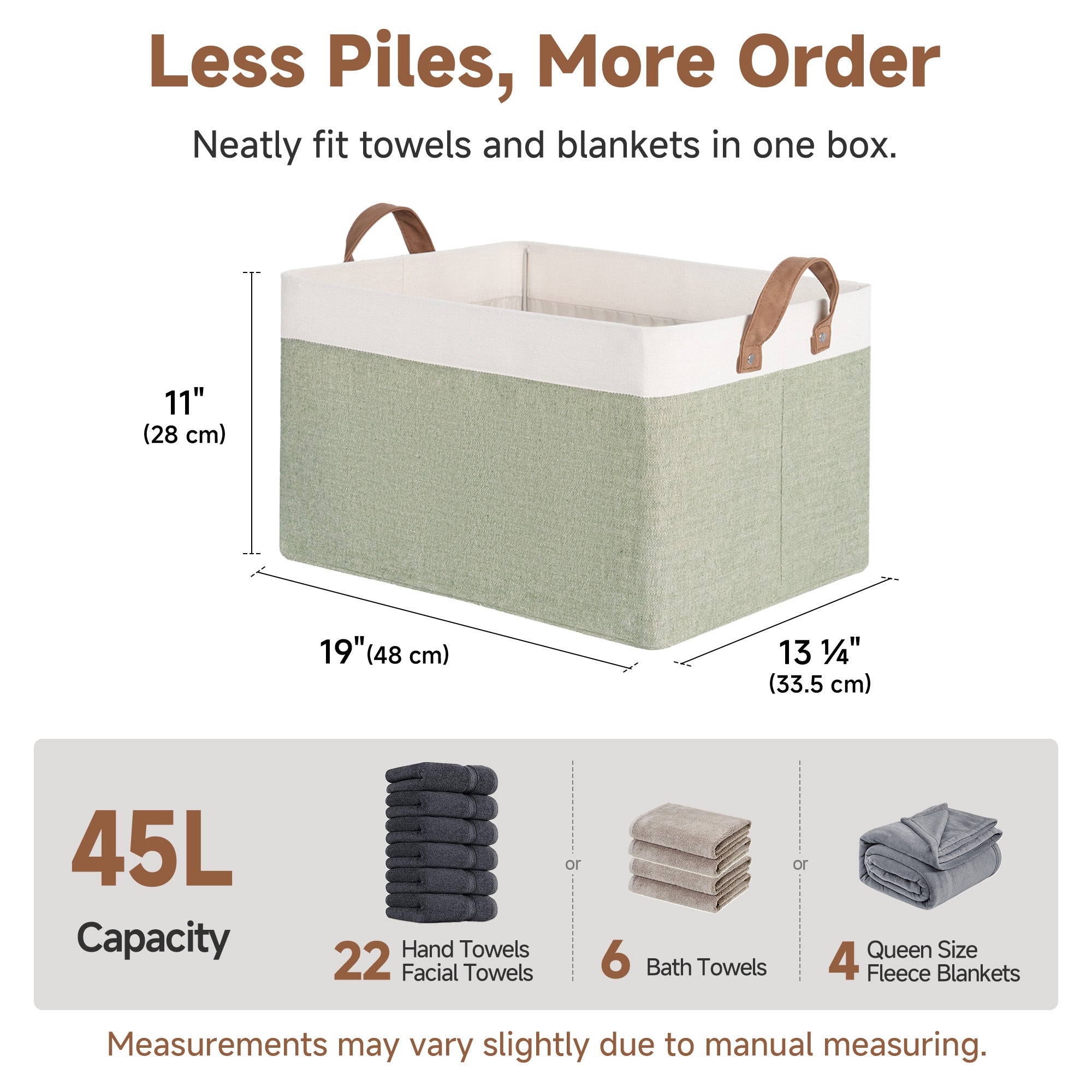 - Generous Capacity: Designed as large storage baskets for everyday organization and storage, they neatly hold clothes, towels, blankets, toys, and more.
