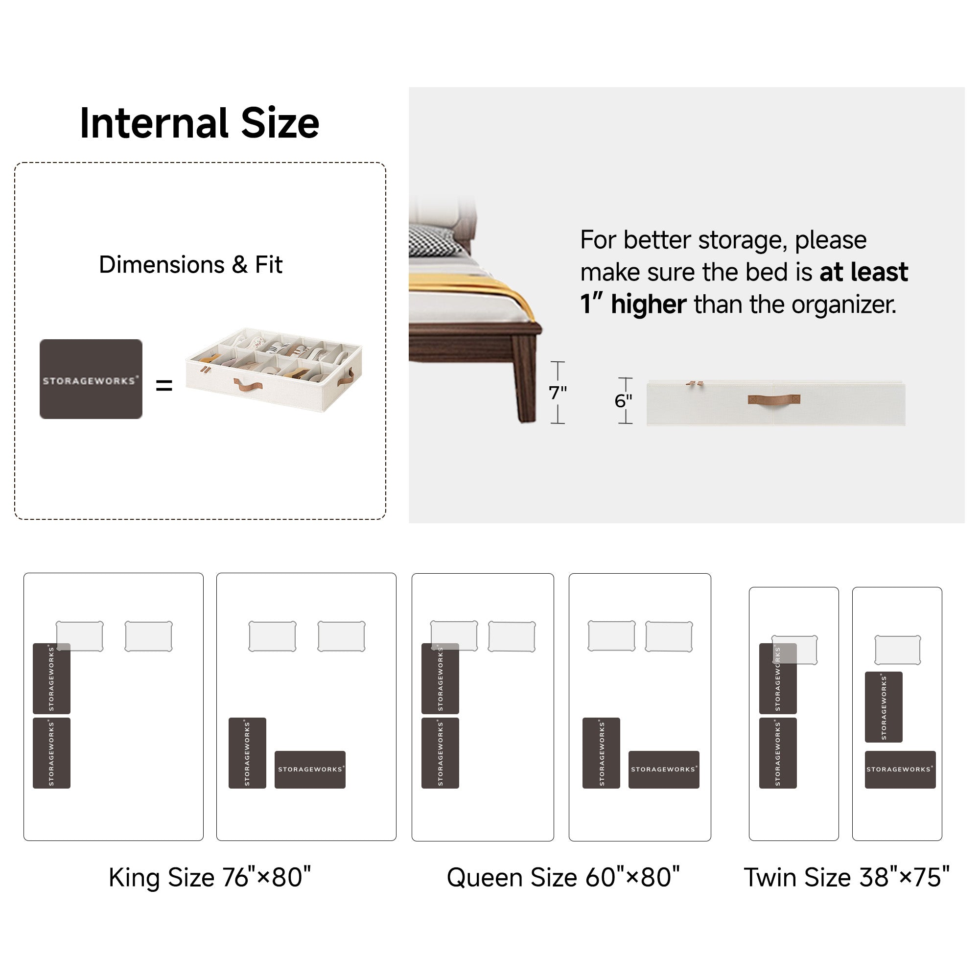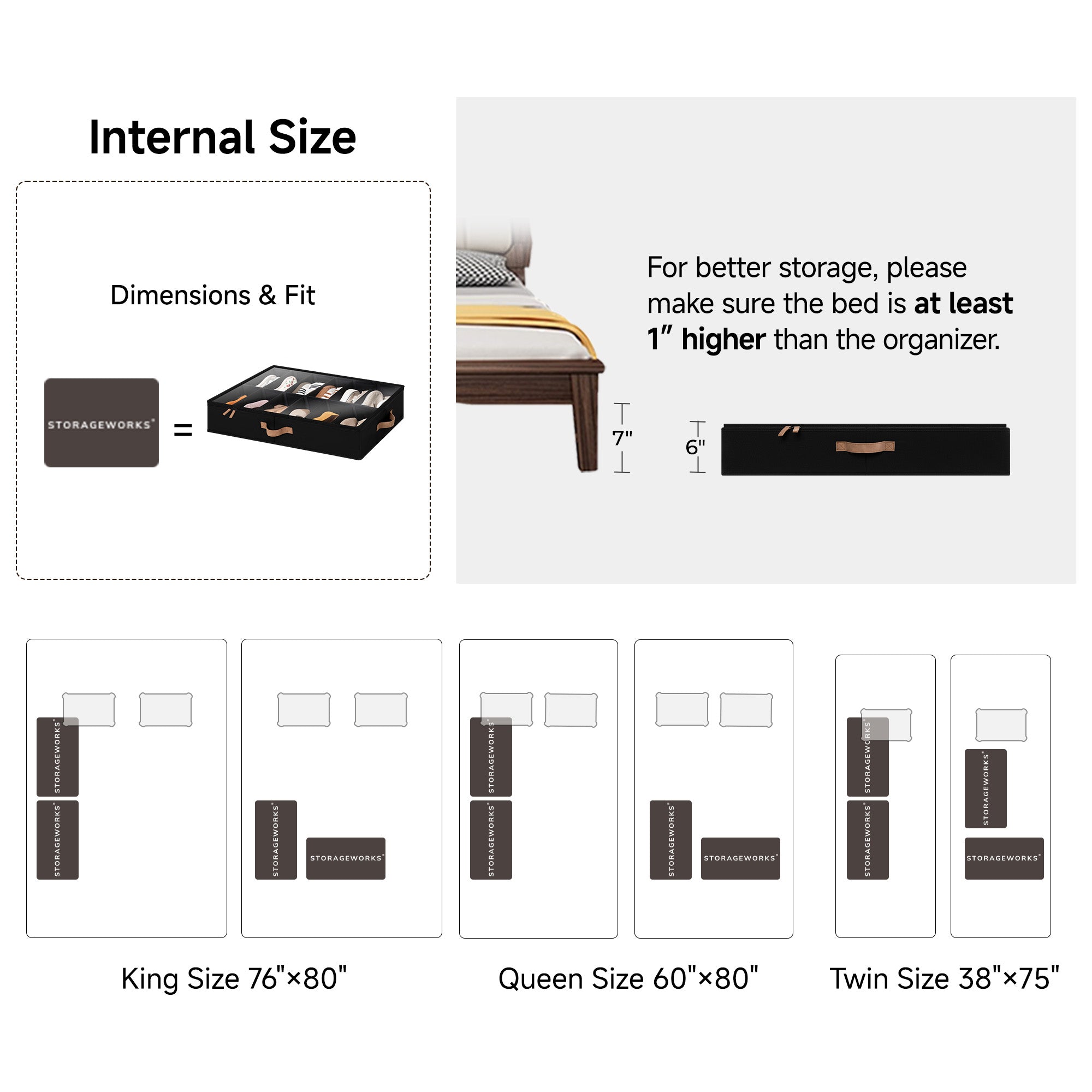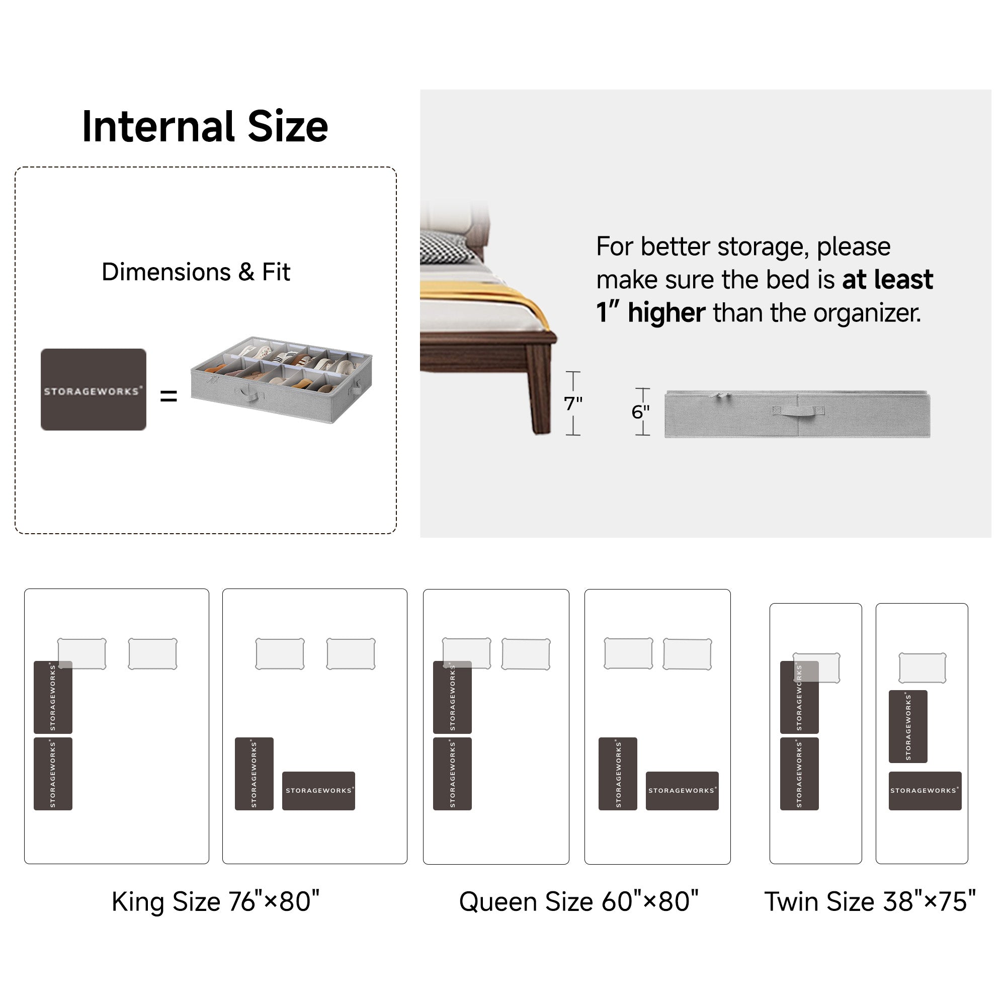 Measuring 30" L x 24 ½" W x 5 ¼" H, these underbed shoe storage organizers can hold up to 24 pairs of shoes with ease (12 each) and are perfect for storing various kinds of shoes such as sneakers, loafers, sandals, and flat shoes.