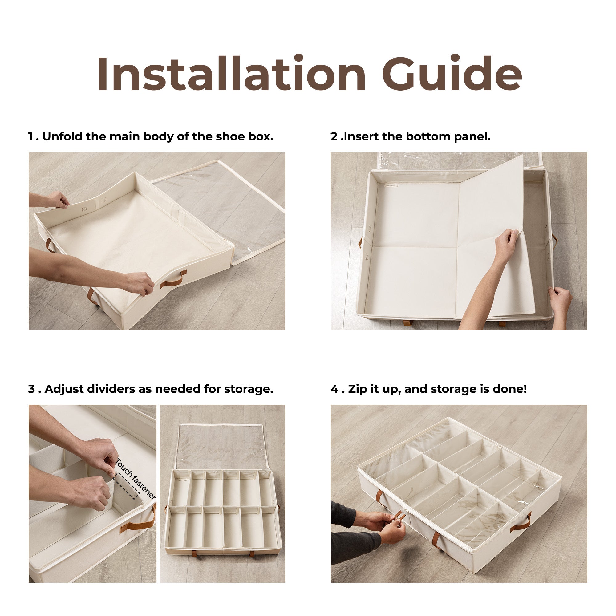 The shoe storage boxes feature a clear lid, enabling easy identification of the contents while keeping them safe from dust. The sturdy two-way zippers allow you to slide them open and close smoothly.