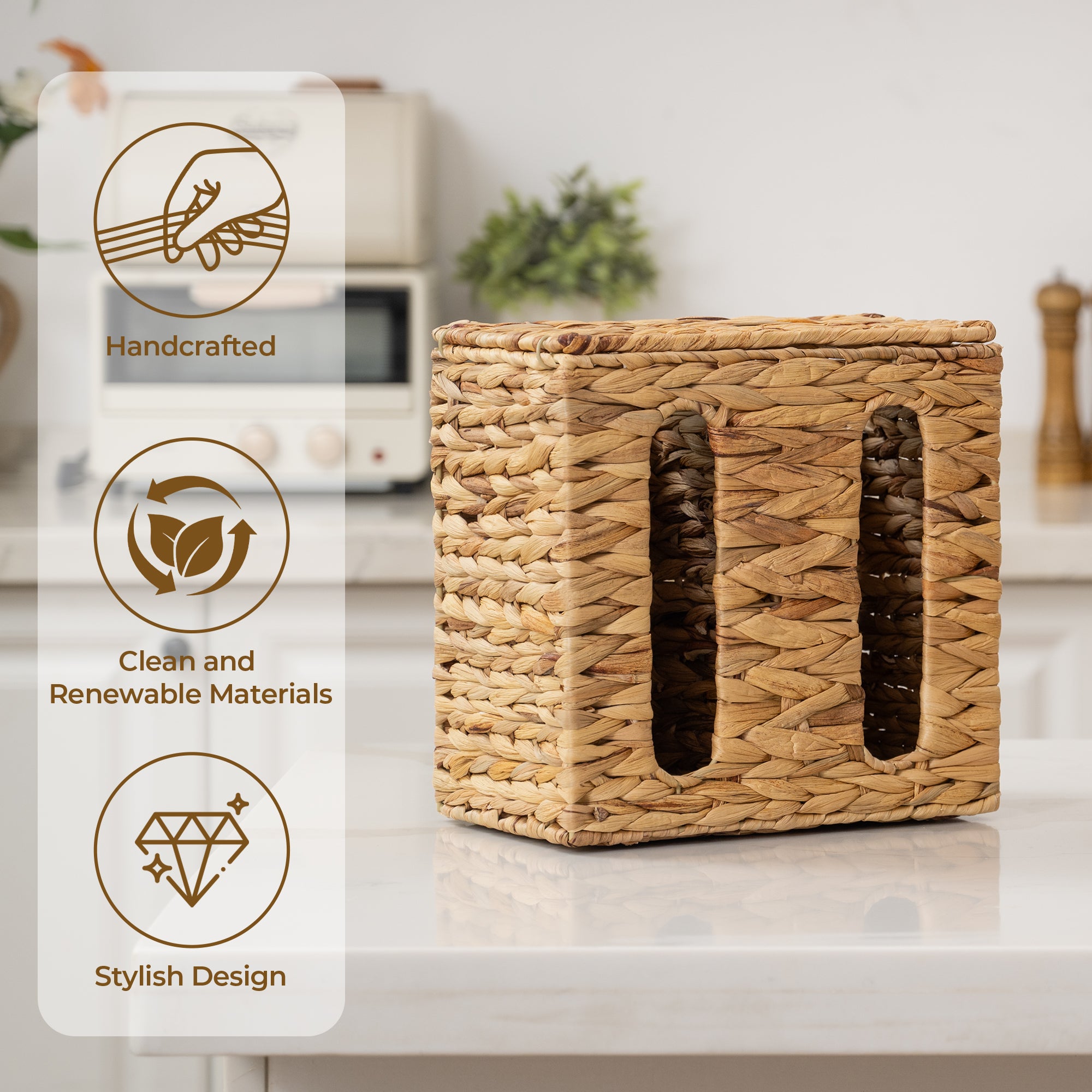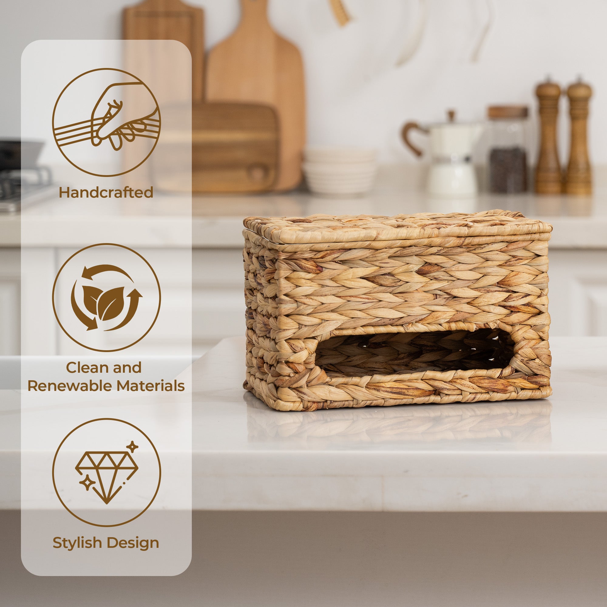 Built to Last: This eco-conscious garbage bag holder is crafted from natural material and handwoven by skilled artisans. Durable design, lighter planet footprint.