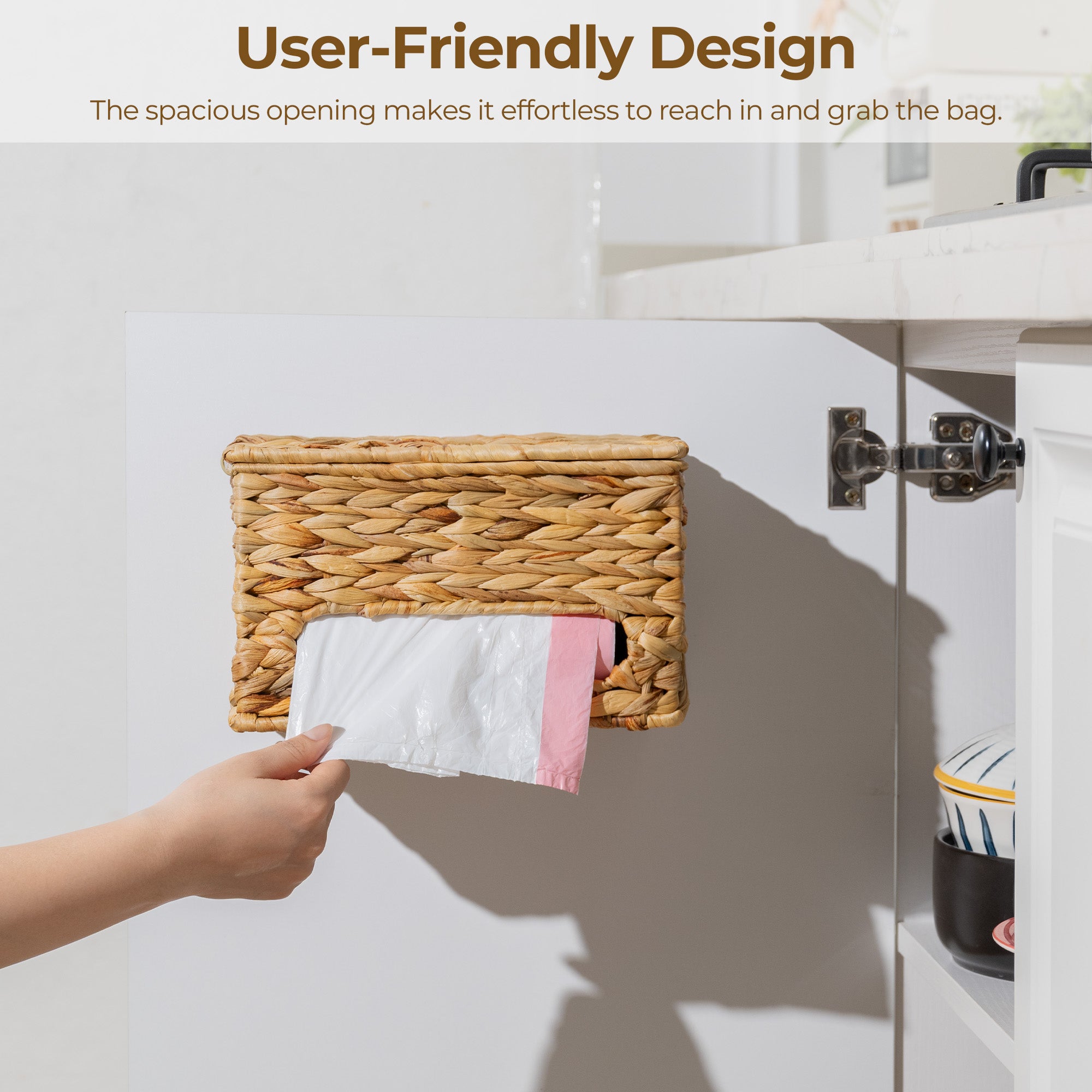 User-Friendly: Never struggle with stuck bags again. Our grocery bag dispenser’s wide-mouth design dispenses bags effortlessly, ensuring hassle-free use every time.