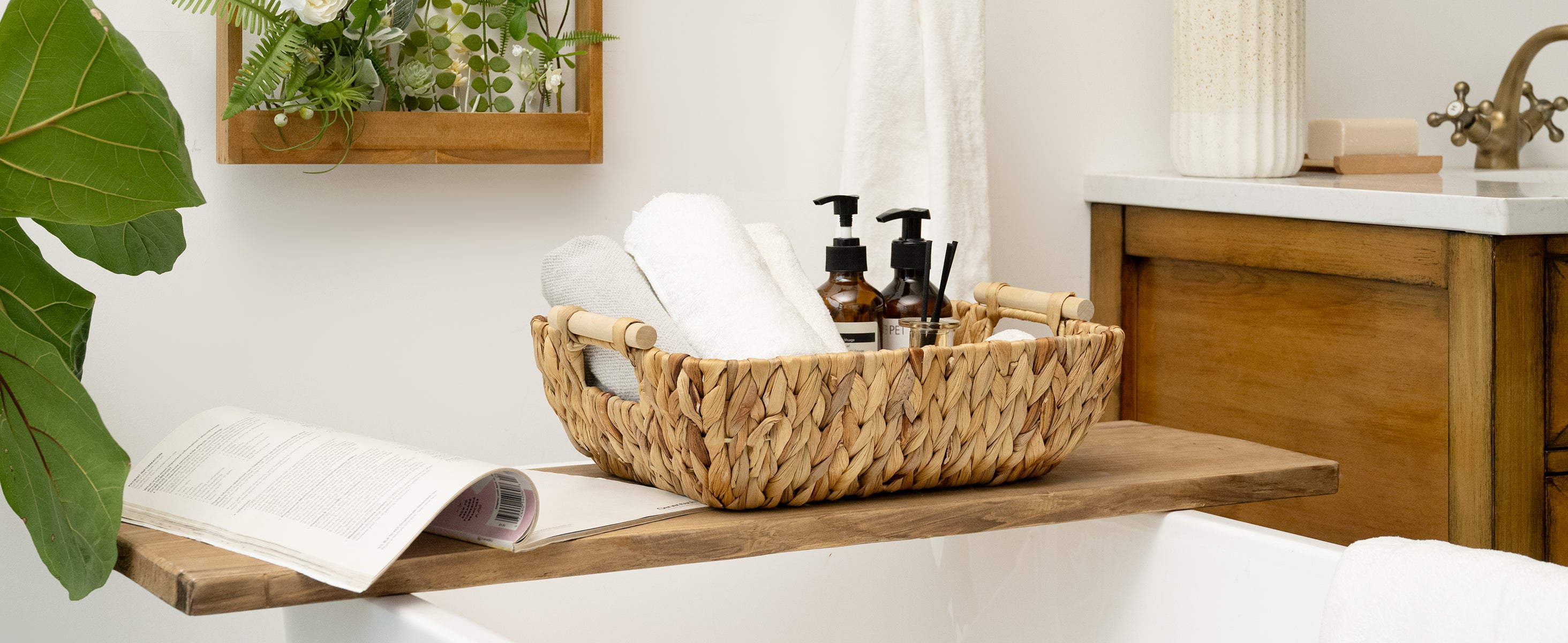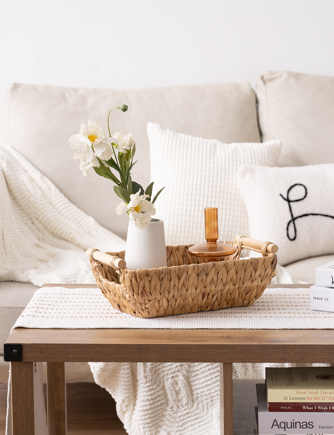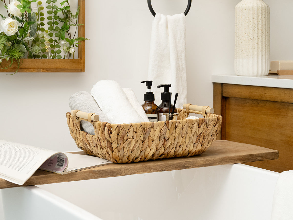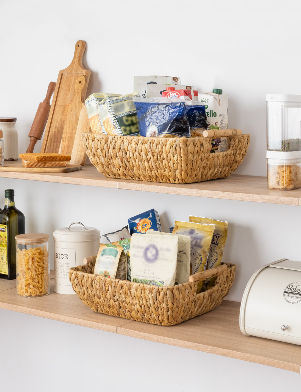• Woven Water Hyacinth Basket with Wooden Handles, 2 Pack