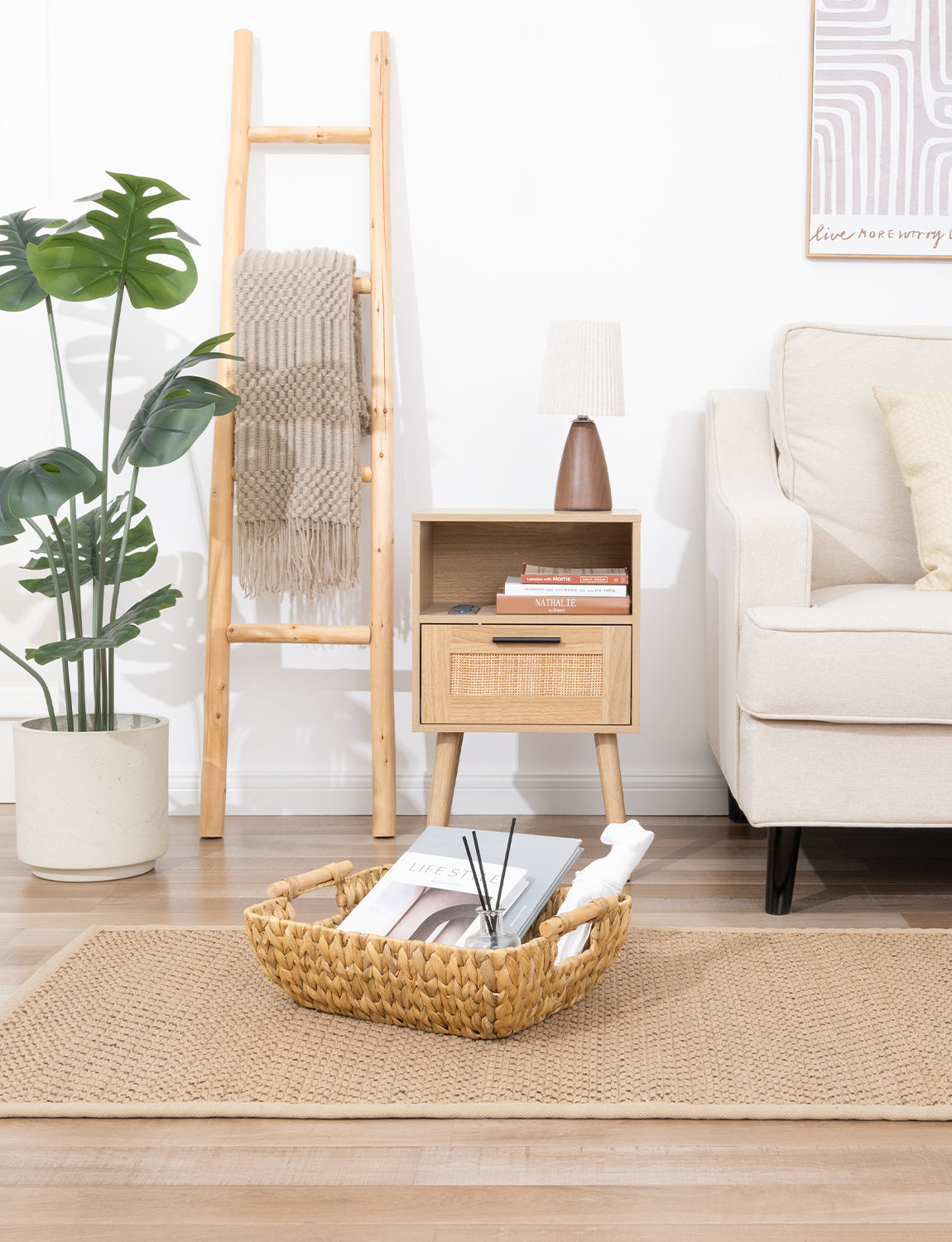 Woven Water Hyacinth Basket with Wooden Handles, 2 Pack