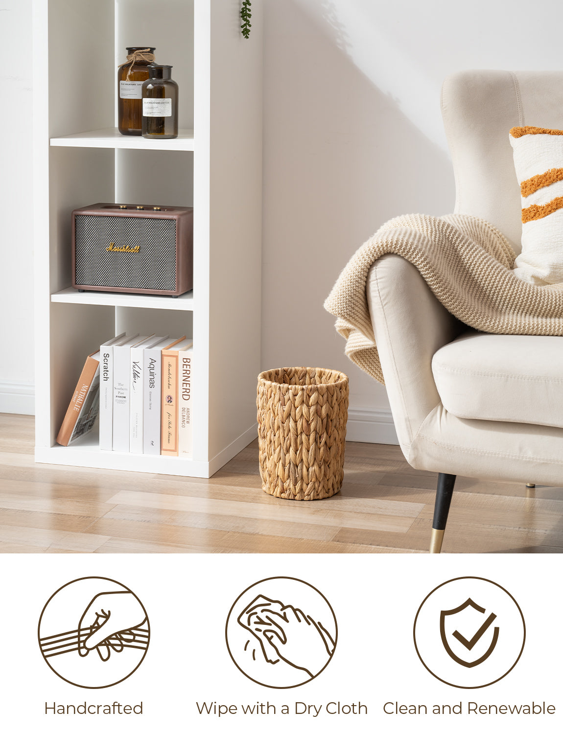 Handwoven Water Hyacinth Garbage Can for Bedroom, Bathroom